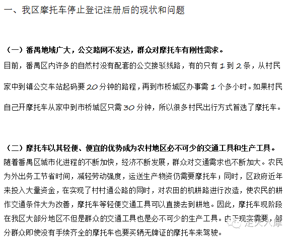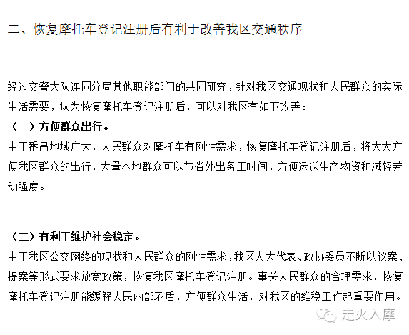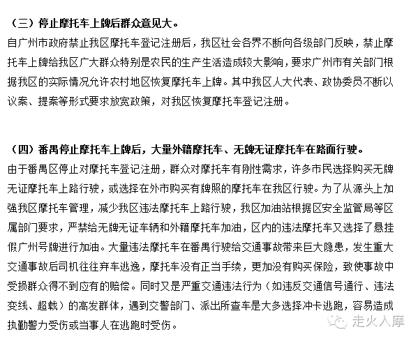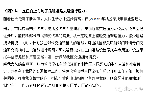 最近广州市番禺交警大队发布了一份关于提议恢复摩托车登记的建议书,无论从群众需求角度还是大面上的交通压力,这份建议声明可是列举的非常详细,番禺交警甚至列举出了数据来进行对比。对于禁摩此事如此积极的态度,走火君真心为他们点赞!