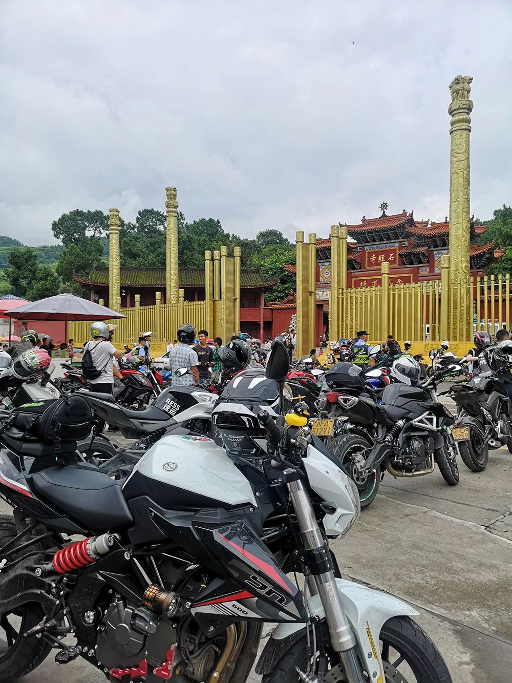 车队巡游,从洛带古镇出发,上龙泉山到石经寺,车友们自发上香,为安全骑行祈福。