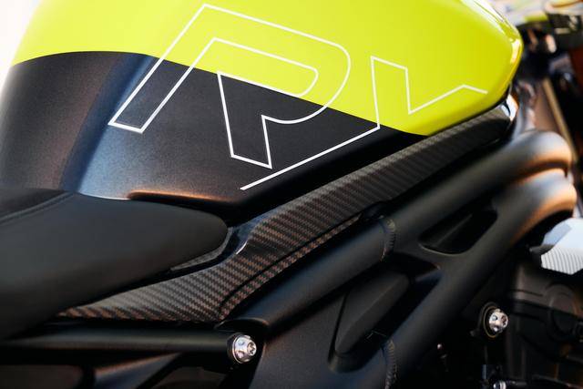 车体方面,采用一副铝合金制双樑式的车架、后单摇臂,运动风格的车身、配以凯旋运动街车标志性的 “ 青蛙眼 ” 式的前双大灯;Ohlins 奥林斯配套的 SmartEC3 半主动控制悬挂系统,前面是叉芯口径为 43 mm、行程为 120 mm 的倒立式前叉,后面是行程为 120 mm 的后减震;Brembo 布雷博配套的 Stylema 前刹车卡钳,直径为 320 mm 的前双刹车碟;其他方面,包括 5 英寸的 TFT 全彩色数字式仪表板,标配了锂电池,启动点火、车头方向锁和燃油盖锁均具有无钥匙操作功能。