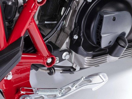 车体方面,采用全外露设计的钢管式车架,Dragster 系列车型脸谱的外观造型、配备了多处的空气动力组件;悬挂系统方面,采用了 Marzocchi 配套的倒立式前叉,Ohlins 奥林斯配套的后减震(左侧偏置式安装的设计)和转向阻尼器;前 270 mm 双碟、后 260 mm 单碟的制动系统,Brembo 布雷博配套的刹车卡钳、标配了 ABS;直径为 15 英寸的前后轮框标配了超宽的 160/60 - 15 轮胎,全 LED 光源的灯光系统,数字式的仪表板等。