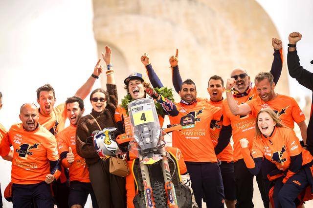 拿到了葡萄牙站的冠军之后,再加上在此前三个分站比赛(沙特举行的达喀尔拉力赛、阿联酋举行的阿布扎比沙漠挑战赛、以及南非举行的 Safari 拉力赛)都全部夺得冠军,桑德斯已经拿到了足够的积分,提前一站夺得了 FIM 世界拉力锦标赛 2025 世界冠军(车手年度积分总冠军)。