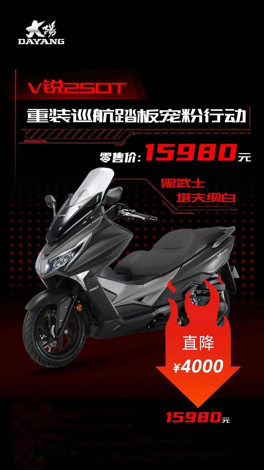 2026款大阳V锐250T以“宠粉价”强势登场,直降4000元后仅售15,980元,以高价值配置重新定义250cc踏板车的诚意标杆。新车在动力、安全、智能三大维度全面进阶,为追求实用与科技兼备的骑士提供了全新选择。