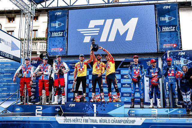 在障碍攀爬类的大赛里,西班牙有着绝对的优势。而今年的国家杯,他们就派出了强大的 “ 梦幻 ” 组合:FIM TrialGP 障碍攀爬世界锦标赛(FIM Trial World Championships)2025 赛季的世界冠军布(Toni Bou ),今年的总亚军布斯托(Jaime Busto)、总季军马塞利(Gabriel Marcelli)。