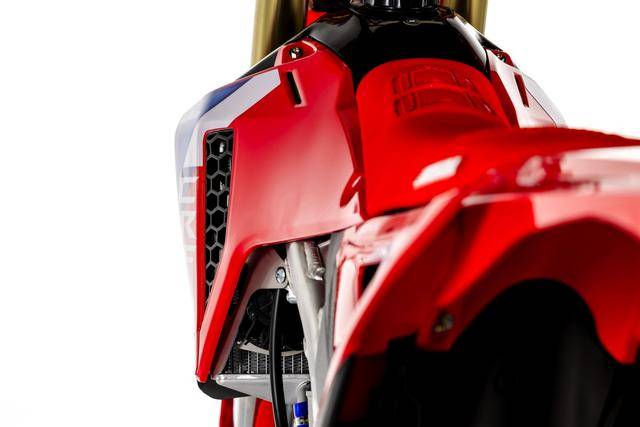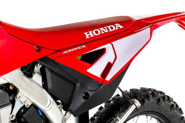与 2025 款相比,2026 CRF450RX 同样是修改了左边鞍座下的侧盖,以及采用了新的车身图案/贴花。