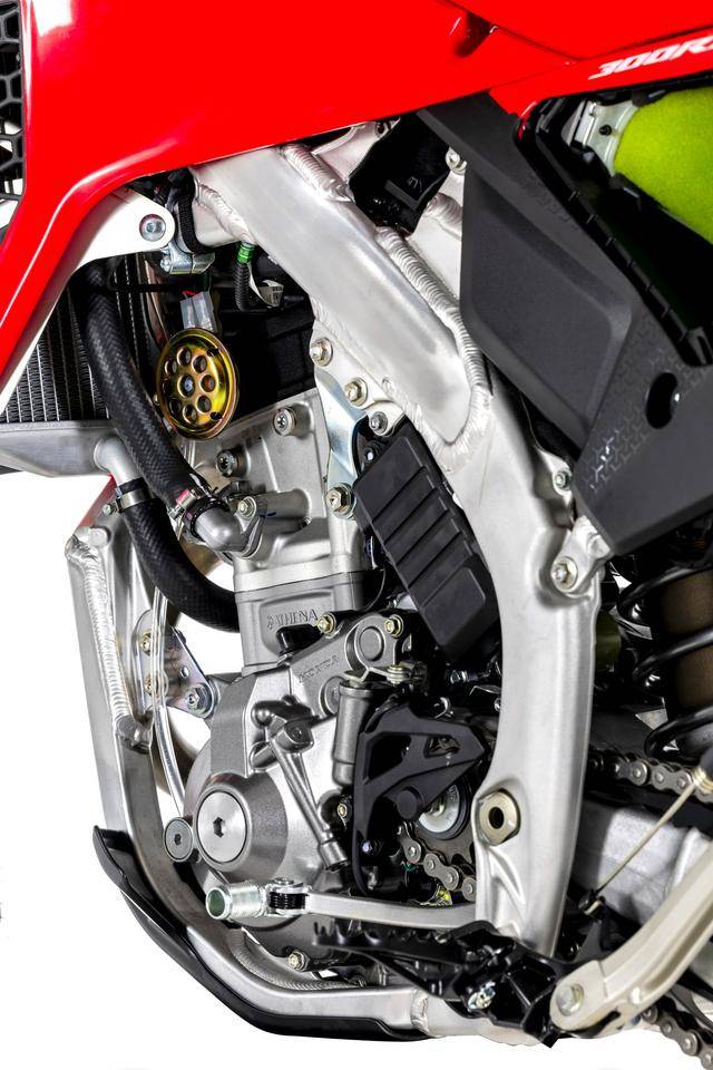 2026 CRF300RX 搭载一副以 CRF250R 为基础升级而成(扩大了缸径)的水冷四冲程单气缸、DOHC 四气阀的发动机,缸径、行程为 86 mm x 50.9 mm,排气量 295.5 cc,五档的变速齿轮箱、电启动。车体、电子辅助控制系统方面,与 CRF250RX 大致相同。此外,2026 款的变化,也与上面的 250 版本相同,采用了新设计的左边鞍座下侧盖,新的车身图案/贴花。
