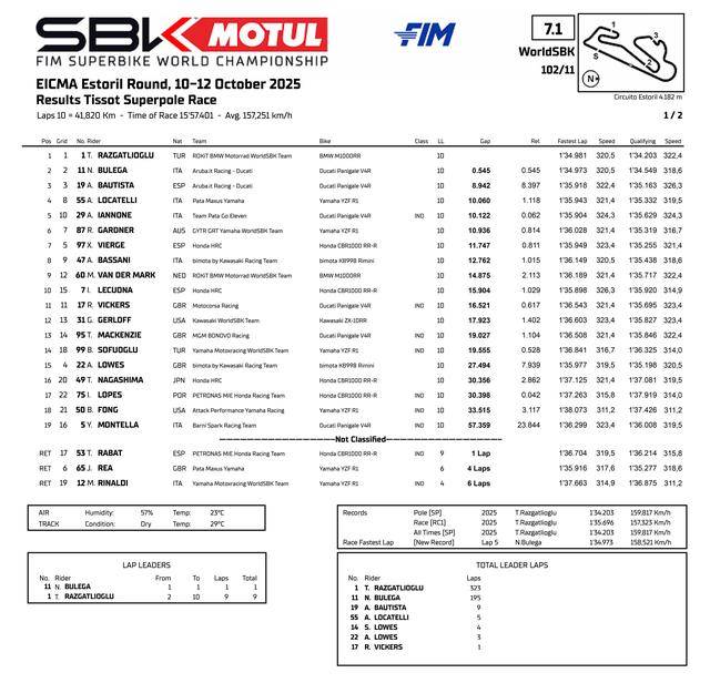 FIM WorldSBK 超级跑车世界锦标赛(FIM Superbike World Championship)2025 赛季第十一站的比赛,十月 10 - 12 日在葡萄牙的埃斯多利(Estoril)赛车场举行。