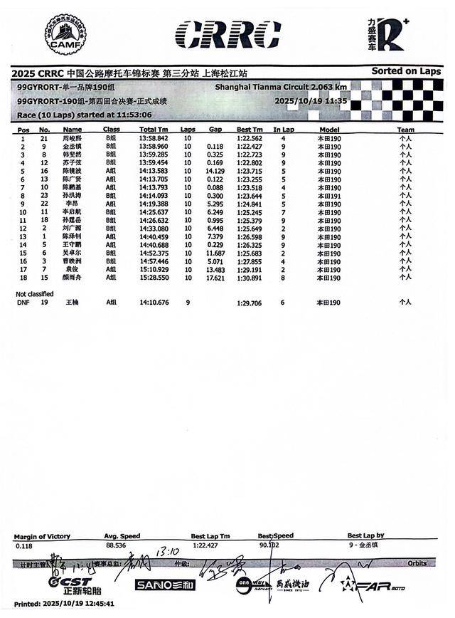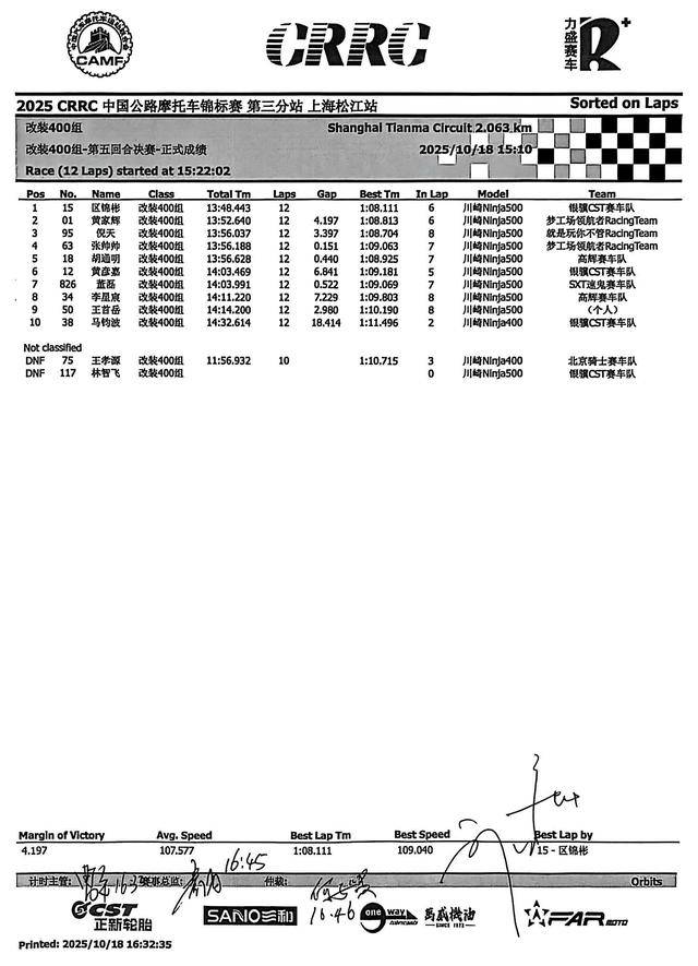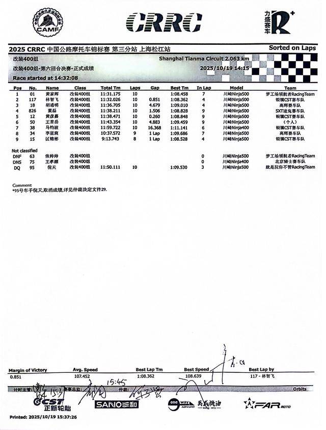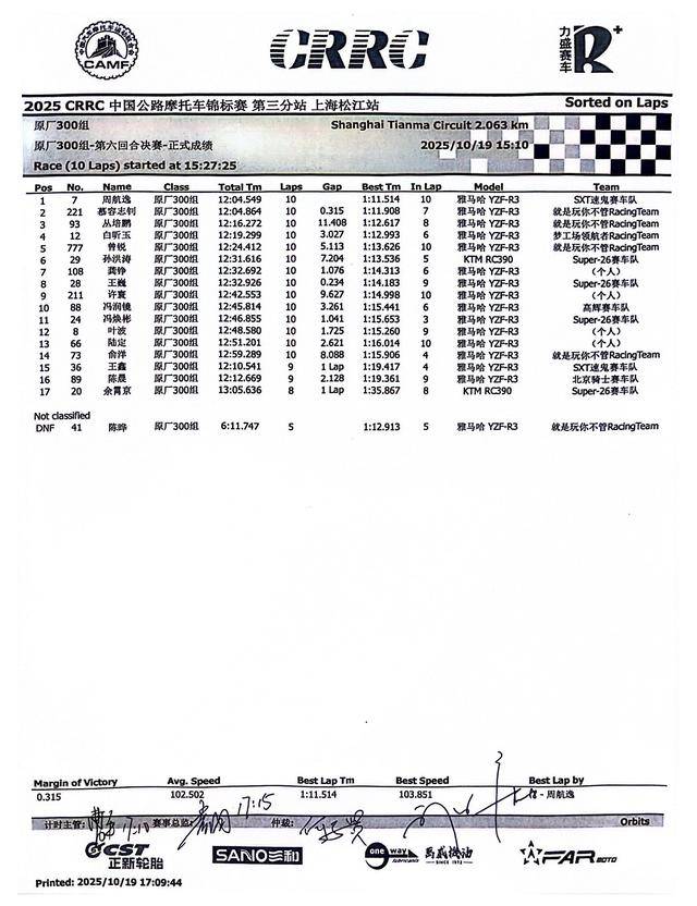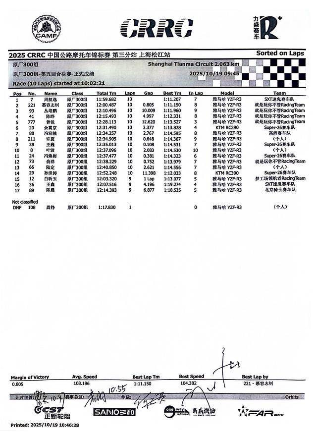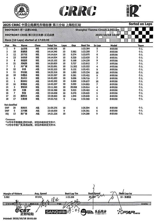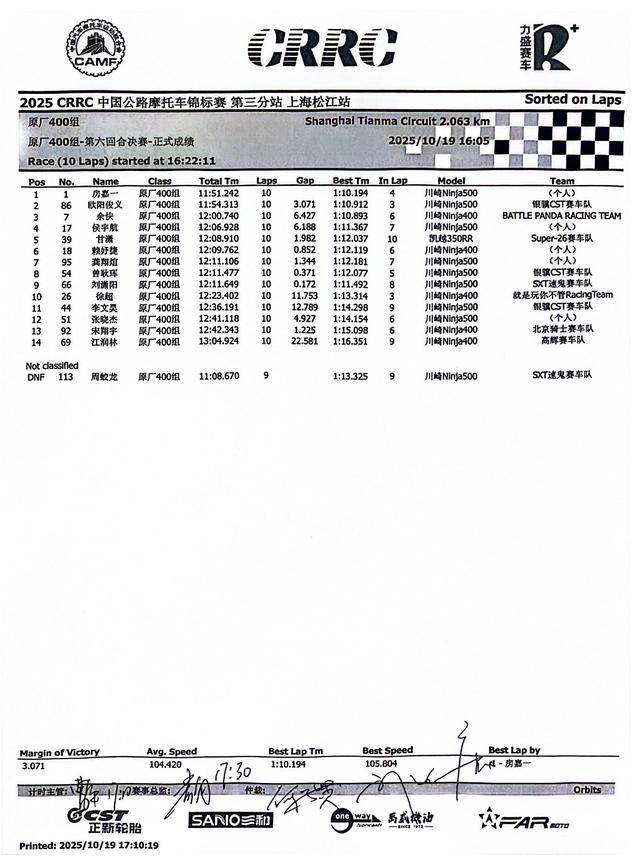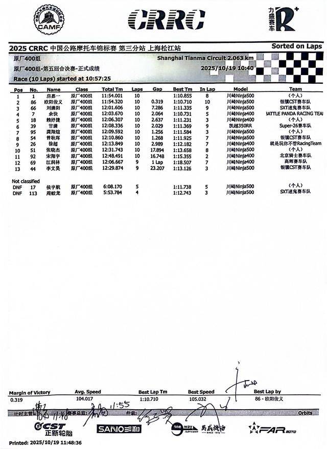 2025 年度 CRRC 中国公路摩托车锦标赛第三站、上海松江站,十月 17 - 19 日在上海天马赛车场举行。