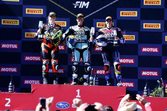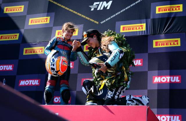 捷雷斯站的比赛,最大的 “ 黑马 ” 是驾驶着 58 号车、直到最后一站才以外卡首次参赛的西班牙车手拉莫斯(Paola Ramos)。第一节的比赛,9 圈的激战,拉莫斯率先冲线,但因为在最后一圈的 1 号弯硬插前面的赫雷拉、尼拉,赛后被赛会以 “ 不负责任的骑行 ” 而罚掉了 3 秒,结果从第一变成了最终的第四名;赫雷拉最后拿到了第一,英国车手琼斯(Chloe Jones)拿到了第二,尼拉获得了第三。车手积分榜上,赫雷拉的领先优势扩大至 15 分,赛季的最后一场比赛、只要拿到超过 10 分,就能确保拿下今年的胜利。