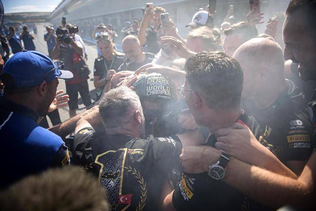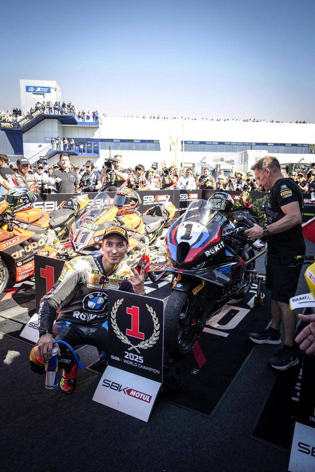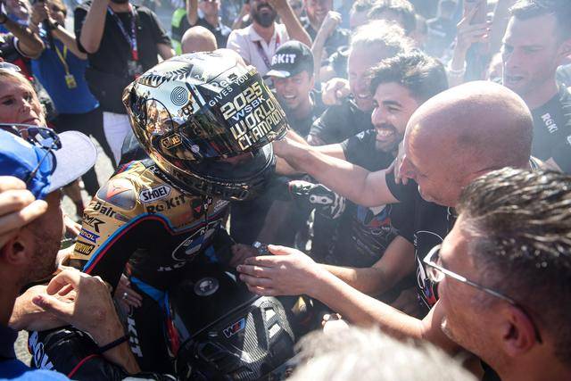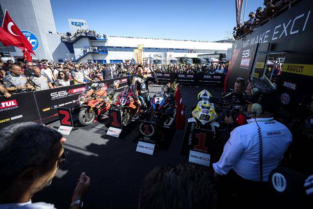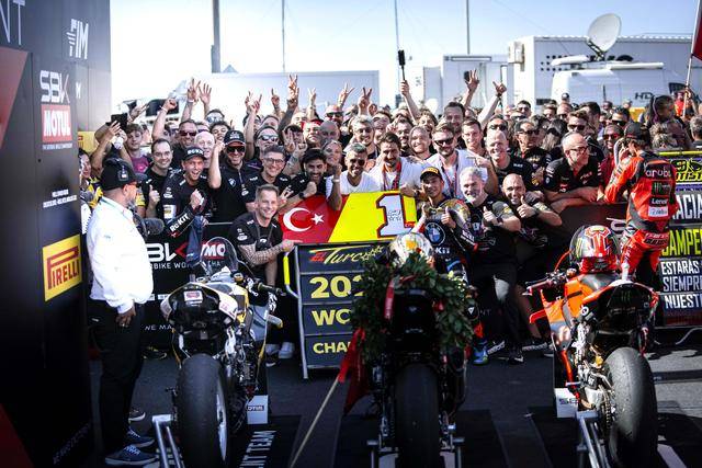 最高级别的 WSBK,积分榜的领先者、驾驶 1 号车的土耳其车手拉格里奥卢(Toprak Razgatlioglu),在第一节比赛拿到了亚军,尽管在超级排位赛正赛没有拿到积分,但在随后的第二节比赛夺得了第三名,顺利夺得了今年 WorldSBK 最高级别的世界冠军(车手年度积分总冠军)。