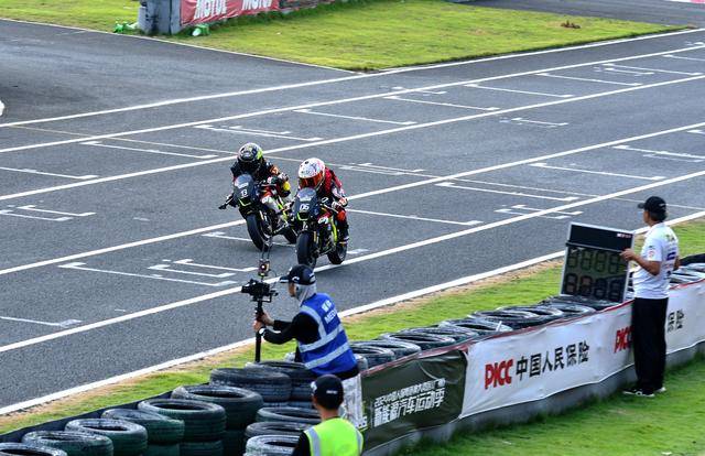 第一节比赛,积分榜第二到第四的三位小车手,16 号车的李宇恒、8 号车的张庭恺与 9 号车的李翊辰,从发车一直拼到最后冲线,张庭恺最终拿下了第一,李翊辰、李宇恒分别获得了第二、第三。三位车手冲线时、冠军与季军的距离只有大约 0.1 秒。