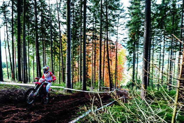 3、EnduroGP2(简称 E2):限定搭载四冲程发动机、排气量从 255 cc 到 450 cc 之间的赛车;