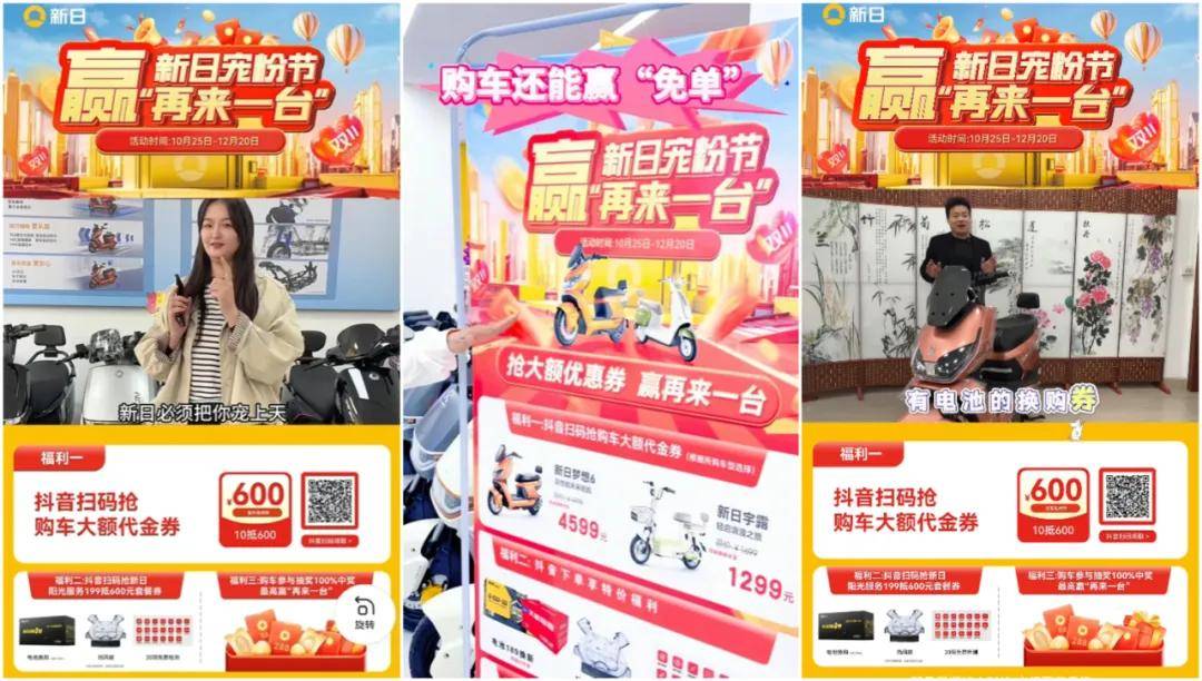 要知道,因新国标对塑件用量的强制要求,电自小包车品类将全面淘汰出局,11月期间将成为用户购买这类车型的最后机会。新日精准把握双11、双12的线上销售旺季,通过双线并进的策略,全面引爆终端的购车热潮,为用户提供最佳的购车、换购时机。