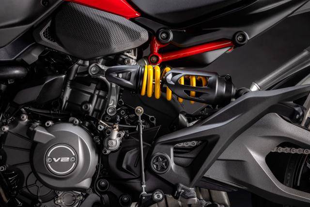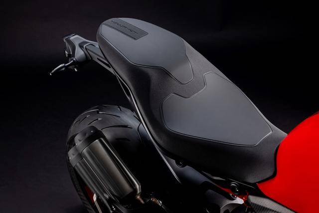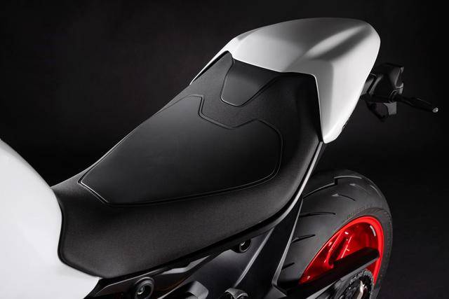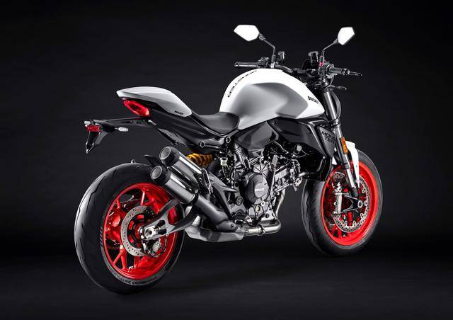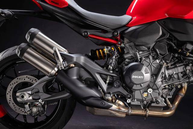 1、全新设计的运动型车架/底盘:铝制的单体式车架、采用了承载式的设计(发动机作为车体重量的承载结构之一),空心对称式的后双摇臂、其灵感来自新一代的超级跑车 Panigale V4。新车架/底盘的技术布局与新发动机结合之下,让新车实现了进一步的轻量化(全车不包括燃油的整备重量为 175 公斤,比上一代车型轻了 4 公斤),在任何情况下都更加灵活、易于操控;