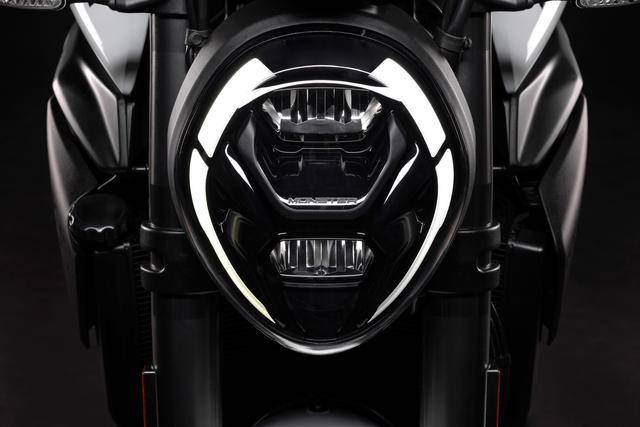 4、有着新外观造型、容量为 14 公升的油箱,更长的 1492 mm 标准轴距(上一代的 M937 为 1474 mm),Brembo 布雷博配套的制动系统,新型 的 5 英寸 TFT 全彩色数字式仪表板,全 LED 的灯光系统等;
