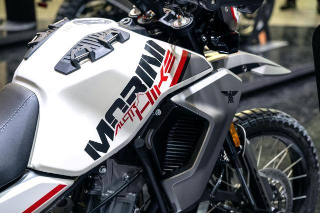 3、外部设计由位于意大利的摩托莫里尼设计中心操刀,在保留其流线型、和谐且功能性比例的同时,以现代风格去重新诠释了上世纪八十年代时的 Kanguro 之经典线条;有着锐利眼神的 LED 前大灯,细长的、便于骑士身体移动的车身,容量为 12 公升、符合人体工程学设计的油箱,一系列元素的结合,让这款紧凑、轻便的双用途探险车型,能带来轻松、愉快的骑行体验;