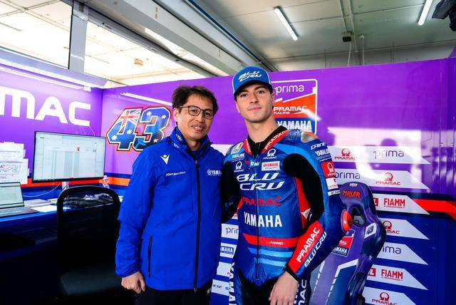 另一位是来自西班牙的古瓦拉(Izan Guevara),他为奔马 Moto2(BLU CRU Pramac Yamaha)车队,在最后一站的比赛里、夺得了他们在今年的首次分站冠军,而此前的马来西亚站比赛期间、奔马车队总监曾对 Moto2 的车手承诺,谁能够拿到分站冠军、那么就可以有机会试骑车队的 YZR-M1 赛车。古瓦拉是 2022 的 Moto3 级别世界冠军,过去的三个赛季都在 Moto2,而他这次的试骑 YZR-M1 赛车属于私人测试,而非 IRTA 的官方测试。