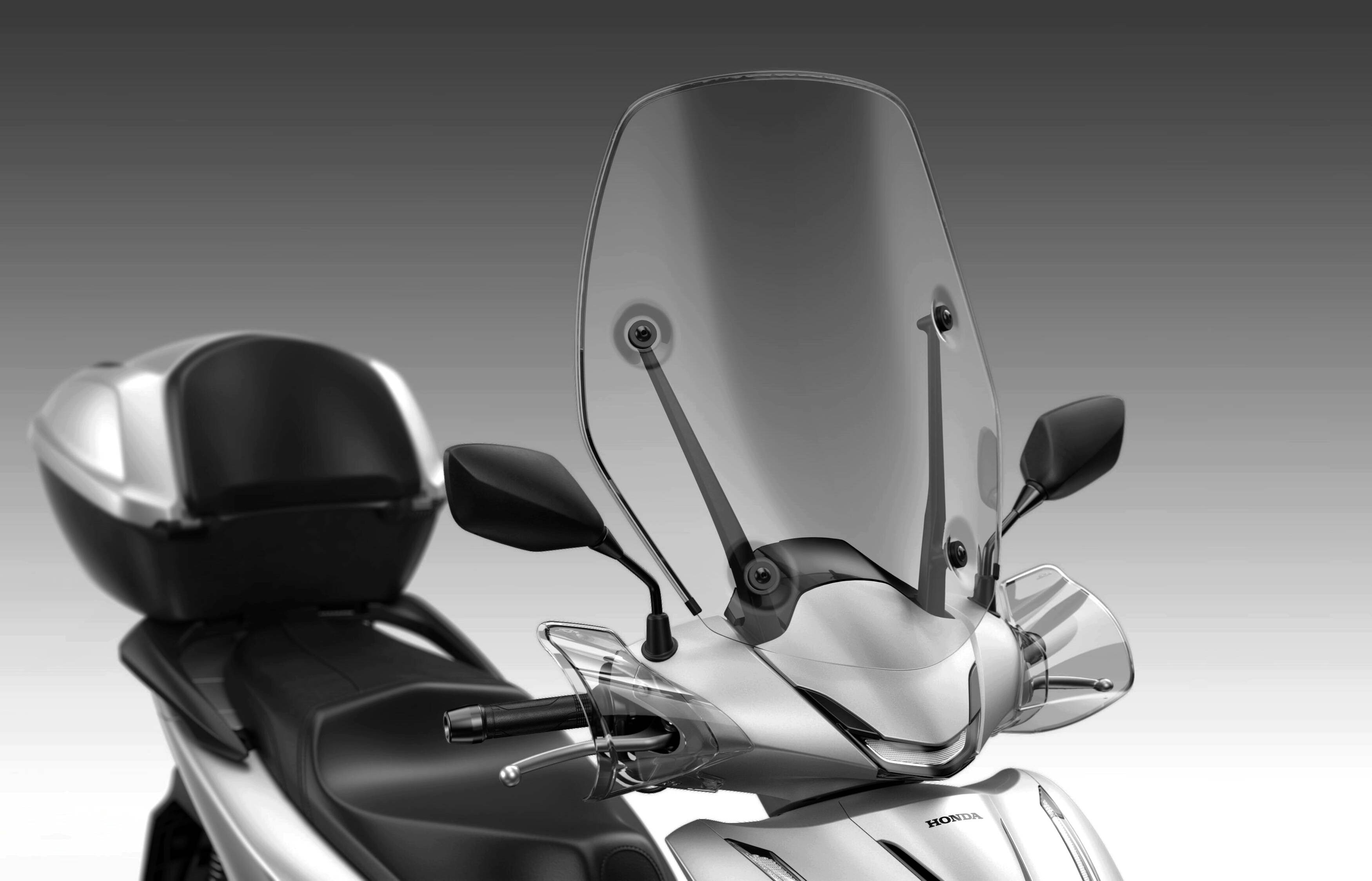 面向欧洲市场,2026 Sh125i 提供五个不同的原厂配置供选购:没有额外附件/用品的基本型,标配了智能化尾箱(与智能钥匙联通)版本,标配了普通尾箱的版本,以及两个标配了前风挡、车把两端护罩以及不同尾箱的版本。