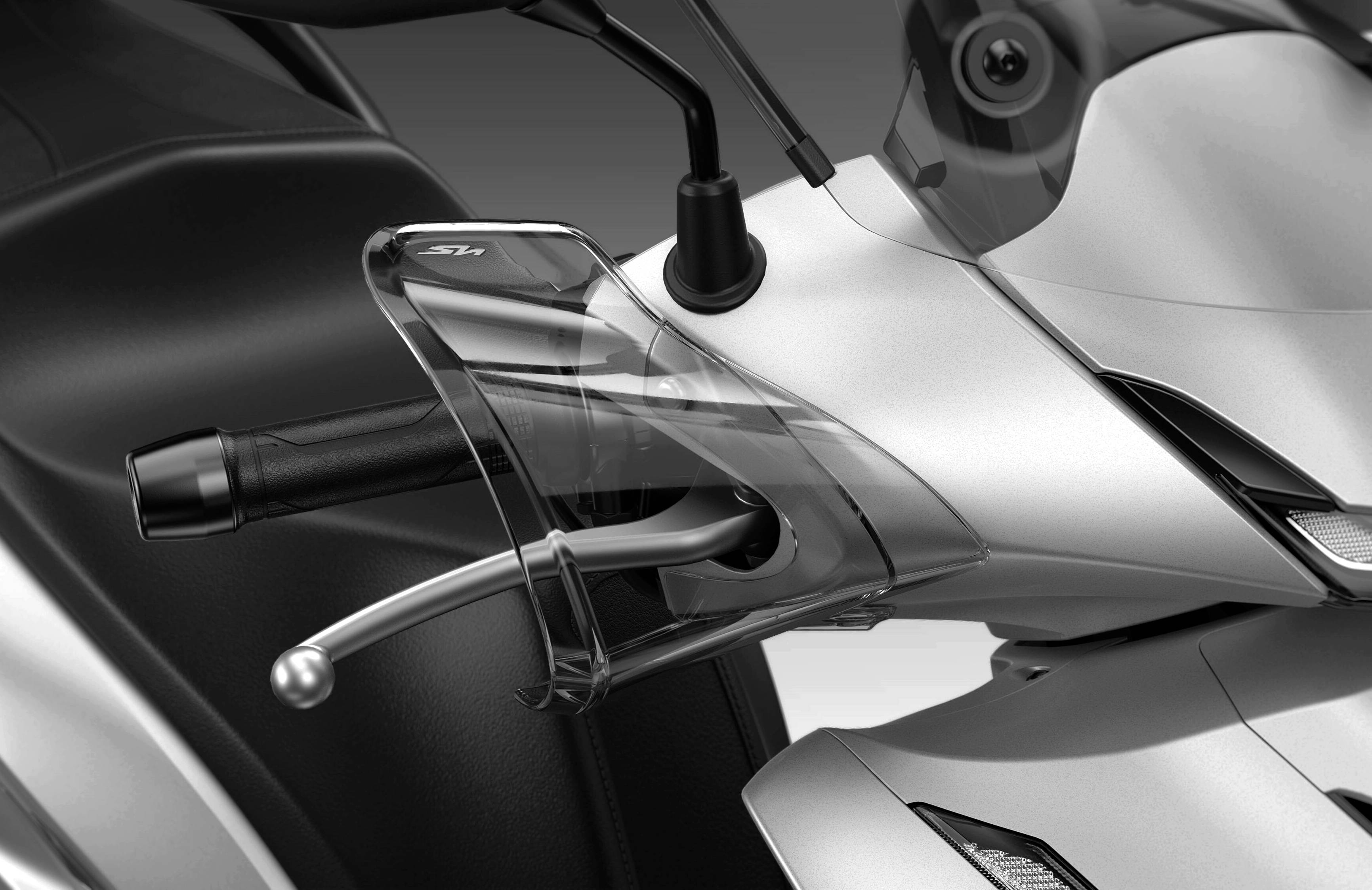 5、采用了一个新的车头造型,前脸有着一个与 Sh350i 更加相似的轮廓,此外还有全新设计的 LED 前大灯;