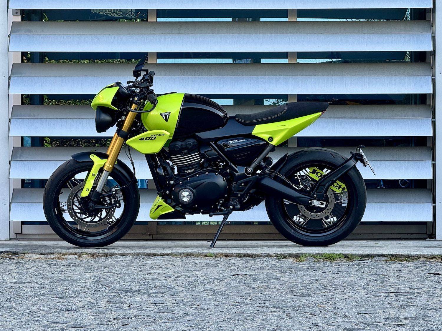 对于资深的凯旋车迷来说,第一眼看到 Viper 400 绝对会心一笑,甚至热泪盈眶。 那个经典的「Roulette Green」轮盘绿烤漆,直接把时光拉回了 Speed Triple 最辉煌的年代。