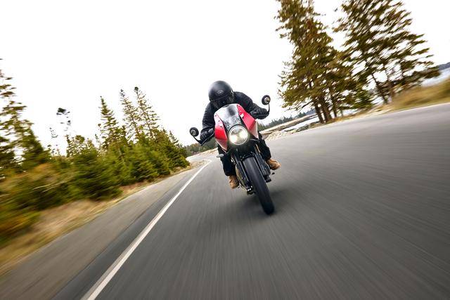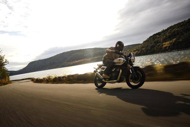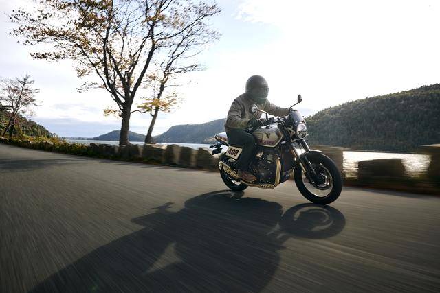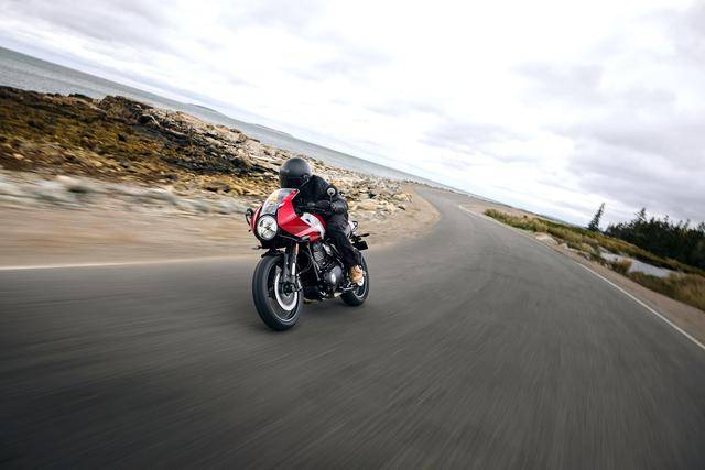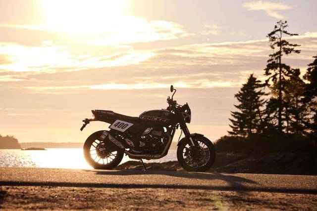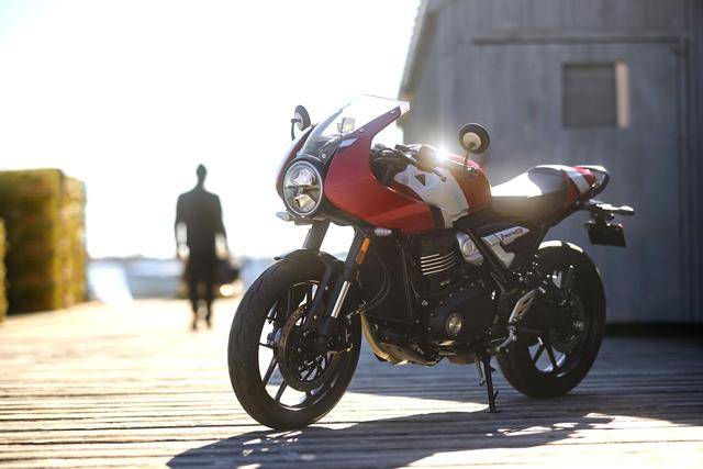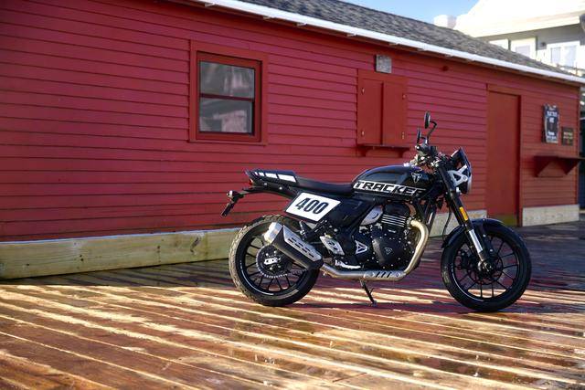 而 Tracker 400 则采用了 Flat Track 泥地赛车的外观风格和骑行姿势,车身的数字 400、意为向传奇的泥地赛车手致敬;悬挂系统方面,采用叉芯口径为 43 mm、标准行程为 140 mm 的倒立式前叉,标准行程为 130 mm 的单筒式后减震;805 mm 的鞍座高度,1371 mm 的标准轴距,双出气口的消声器,标配了块状表面的 Pirelli倍耐力 MT60 RS 越野轮胎。