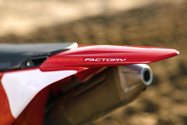 此外,工厂版还换装了带 O 型橡胶圈的 RK MXU Gold 金色传动链条,采用了一个与工厂车队相同风格的车身图案/贴花,全车不含燃料的整备重量为 104 公斤(标准款为 104.8 公斤)。
