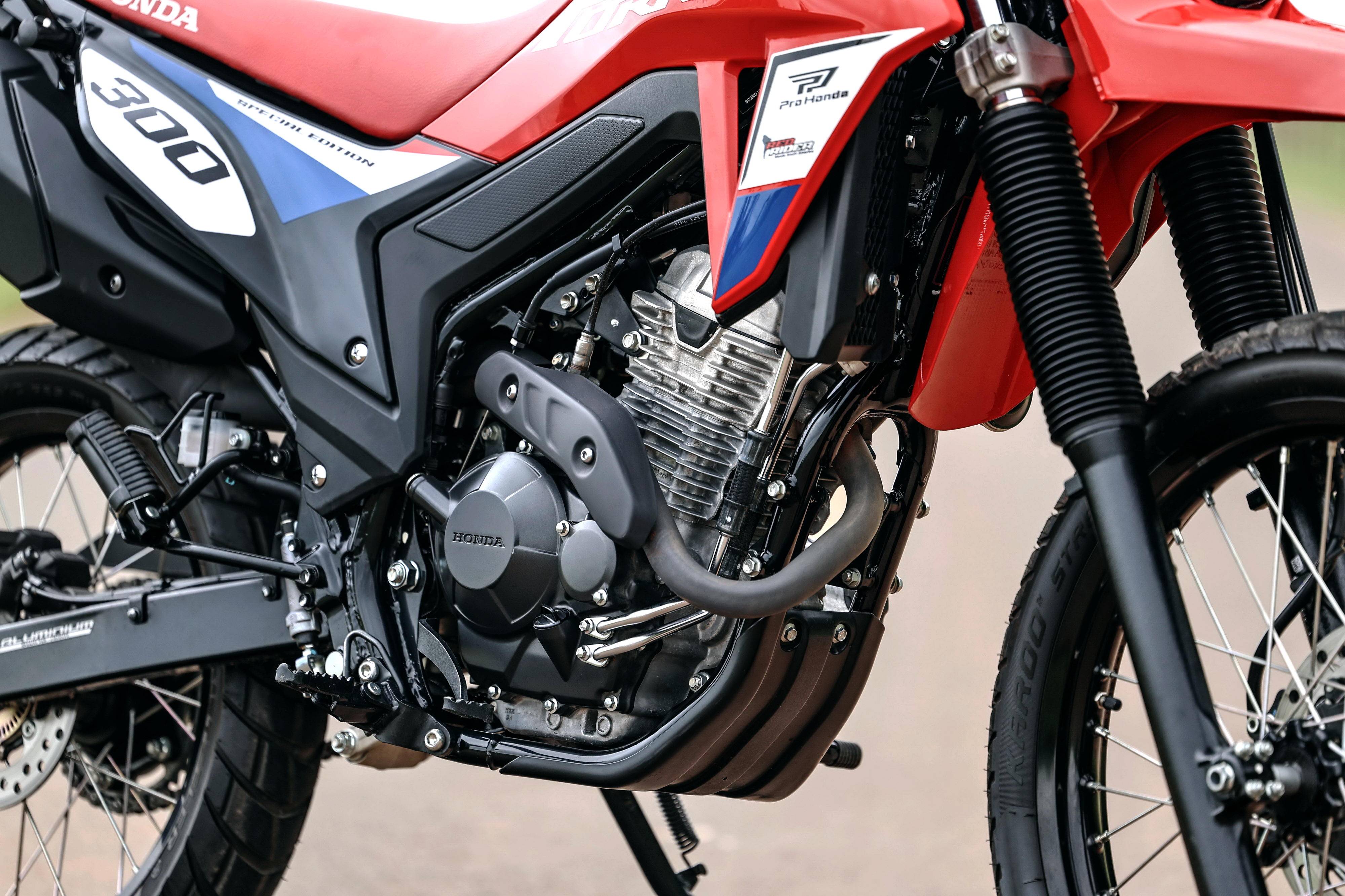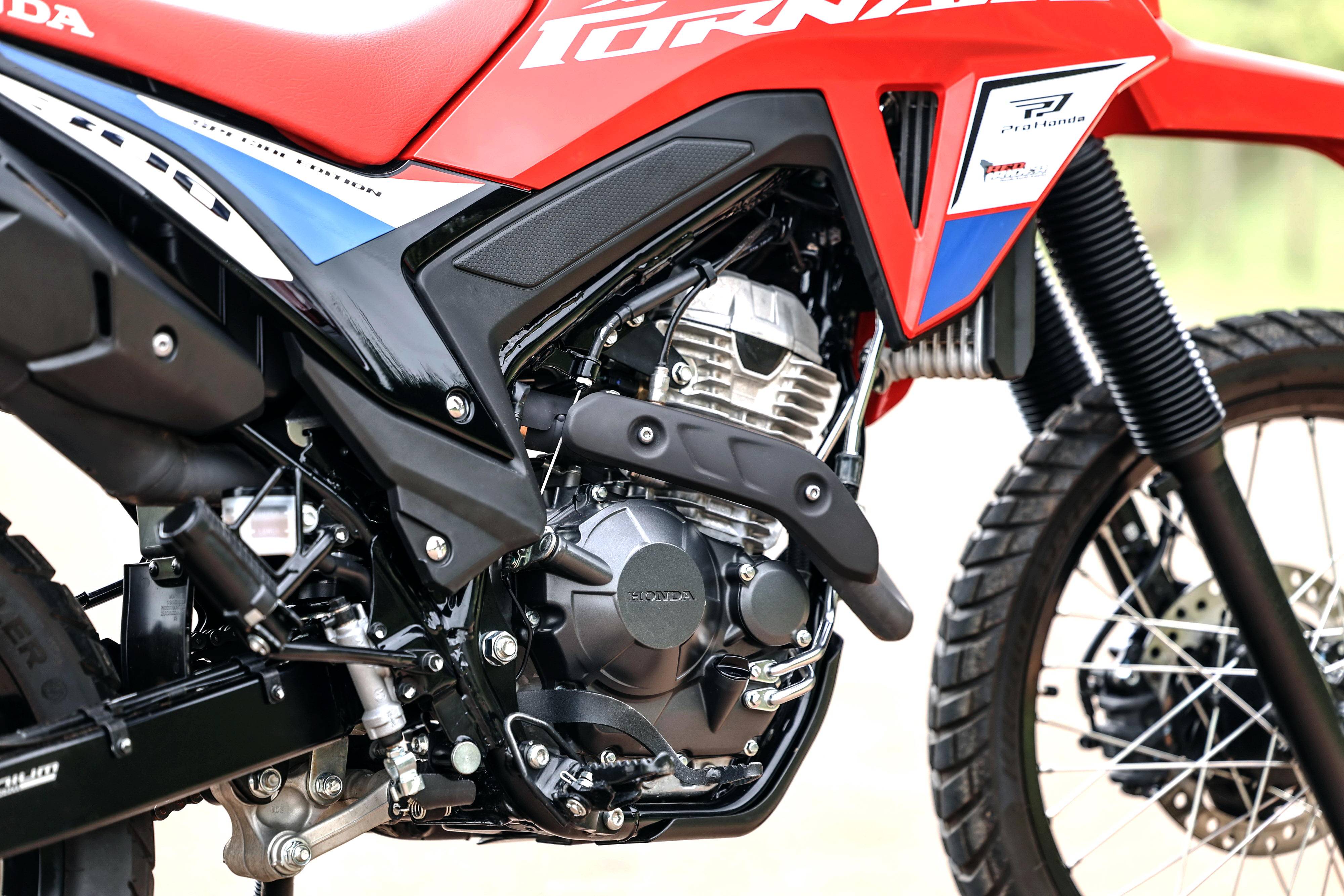 规格和配置上,XR300L Tornado “ 龙卷风 ” 特别版与标准款相同,搭载一副风冷四冲程单气缸、SOHC 四气阀的双燃料发动机,缸径、行程为 77 mm x 63 mm,排气量 293.5 cc,配备了滑动式离合器、六档的变速齿轮箱、带 FlexOne 技术的 PGM-FI 电子燃油喷注系统,峰值动力输出 24.3 匹(使用常规汽油燃料)、24.8 匹(使用乙醇混合燃料)。这副动力单元同时也被用于 CB300F Twister 运动街车、XRE 300 Sahara “ 撒哈拉 ” 以及 Off-Road 非公共道路使用的 CRF300F。