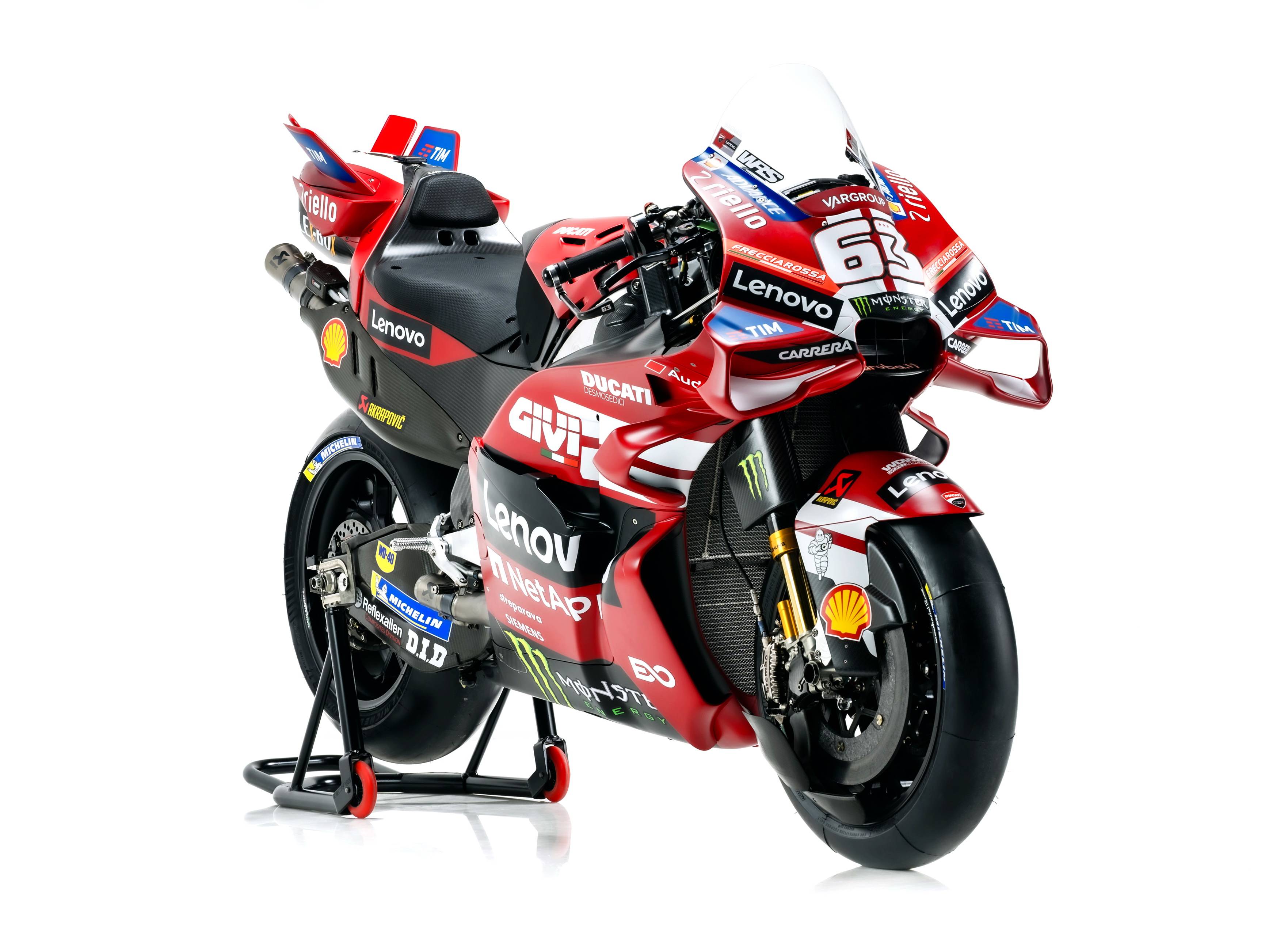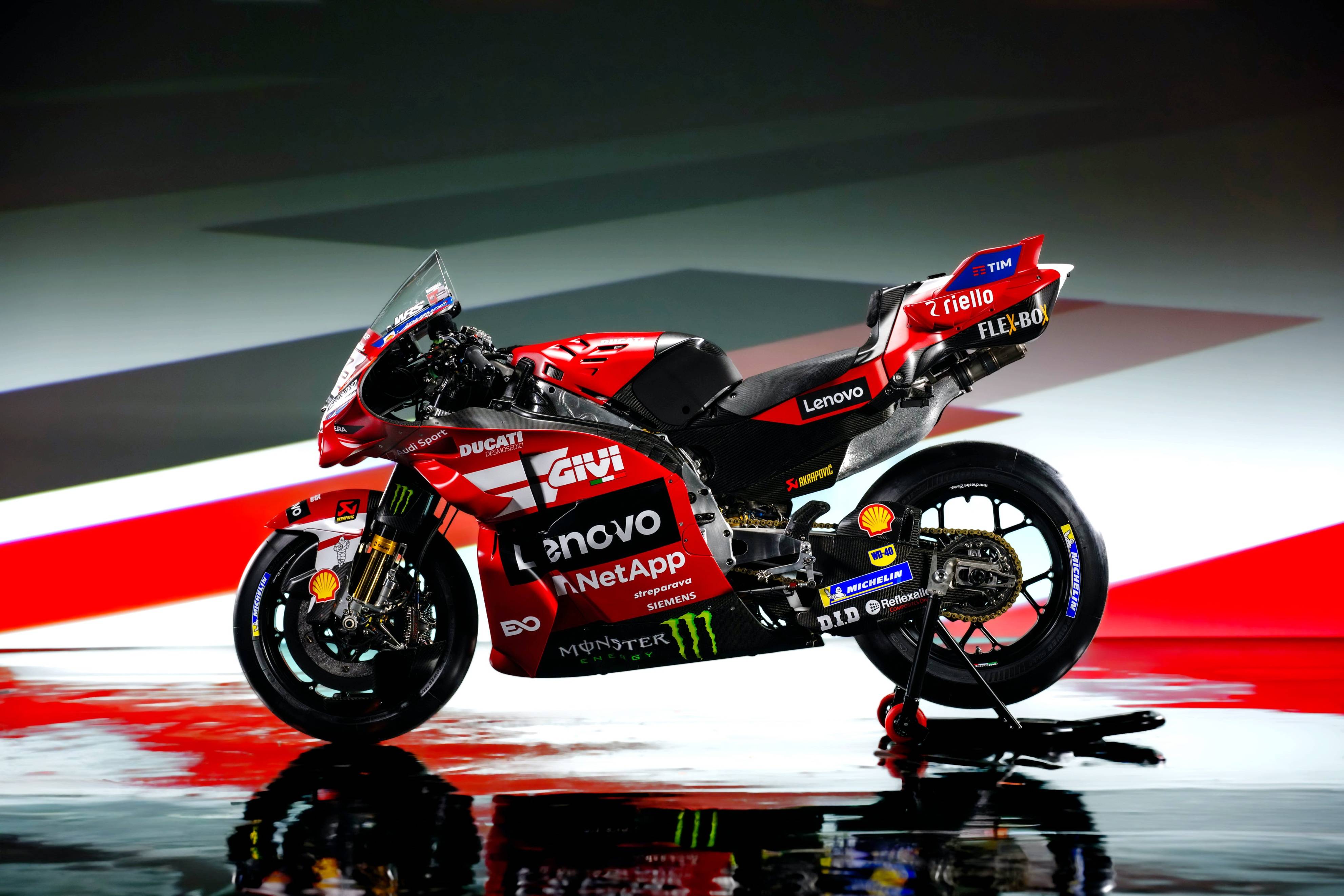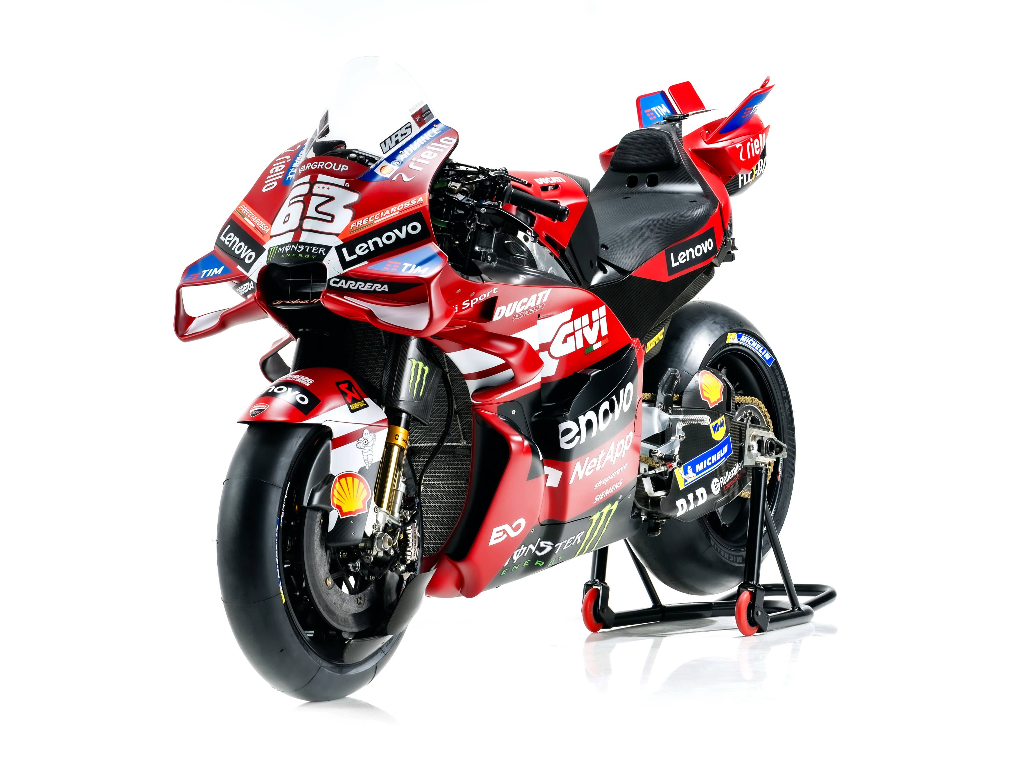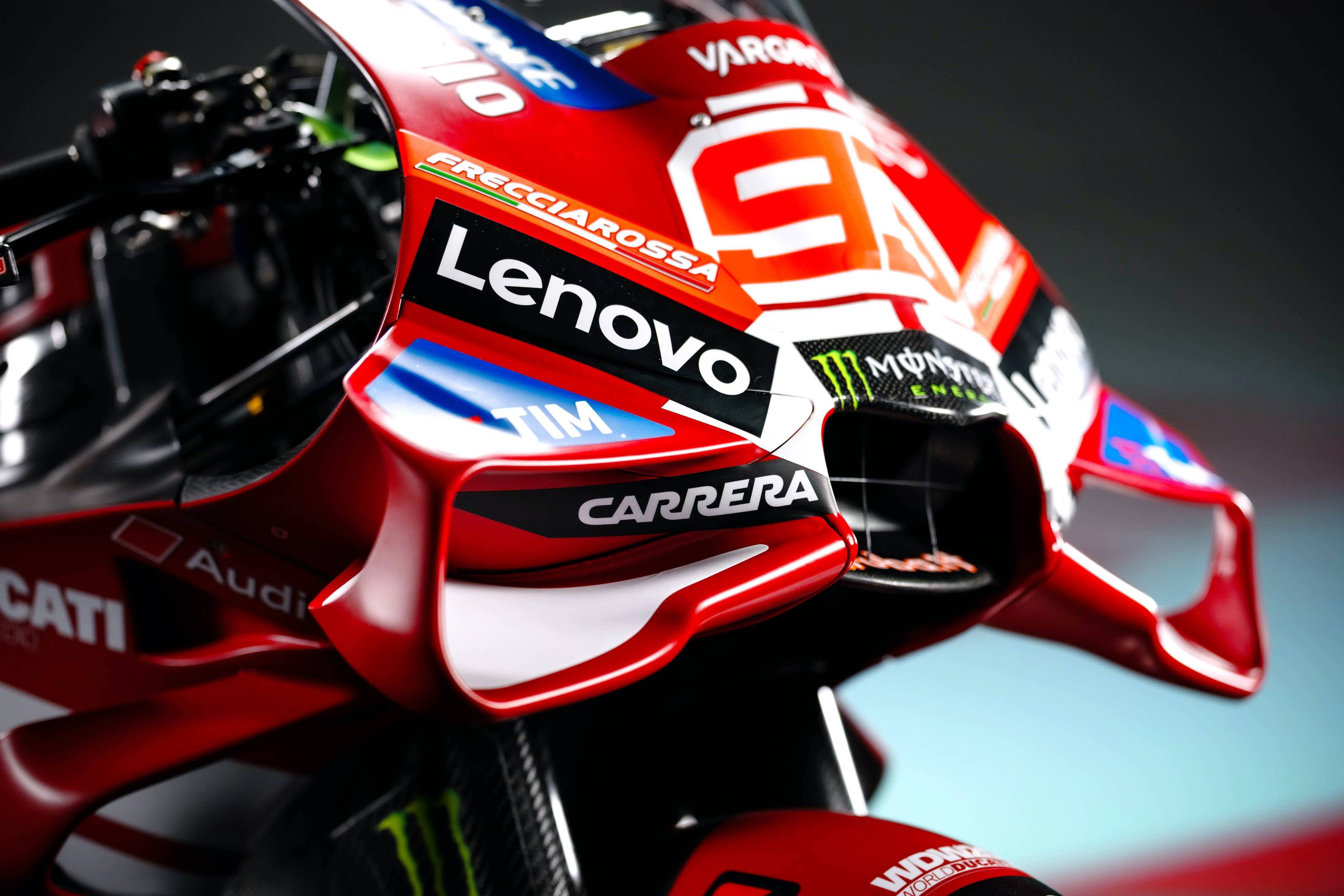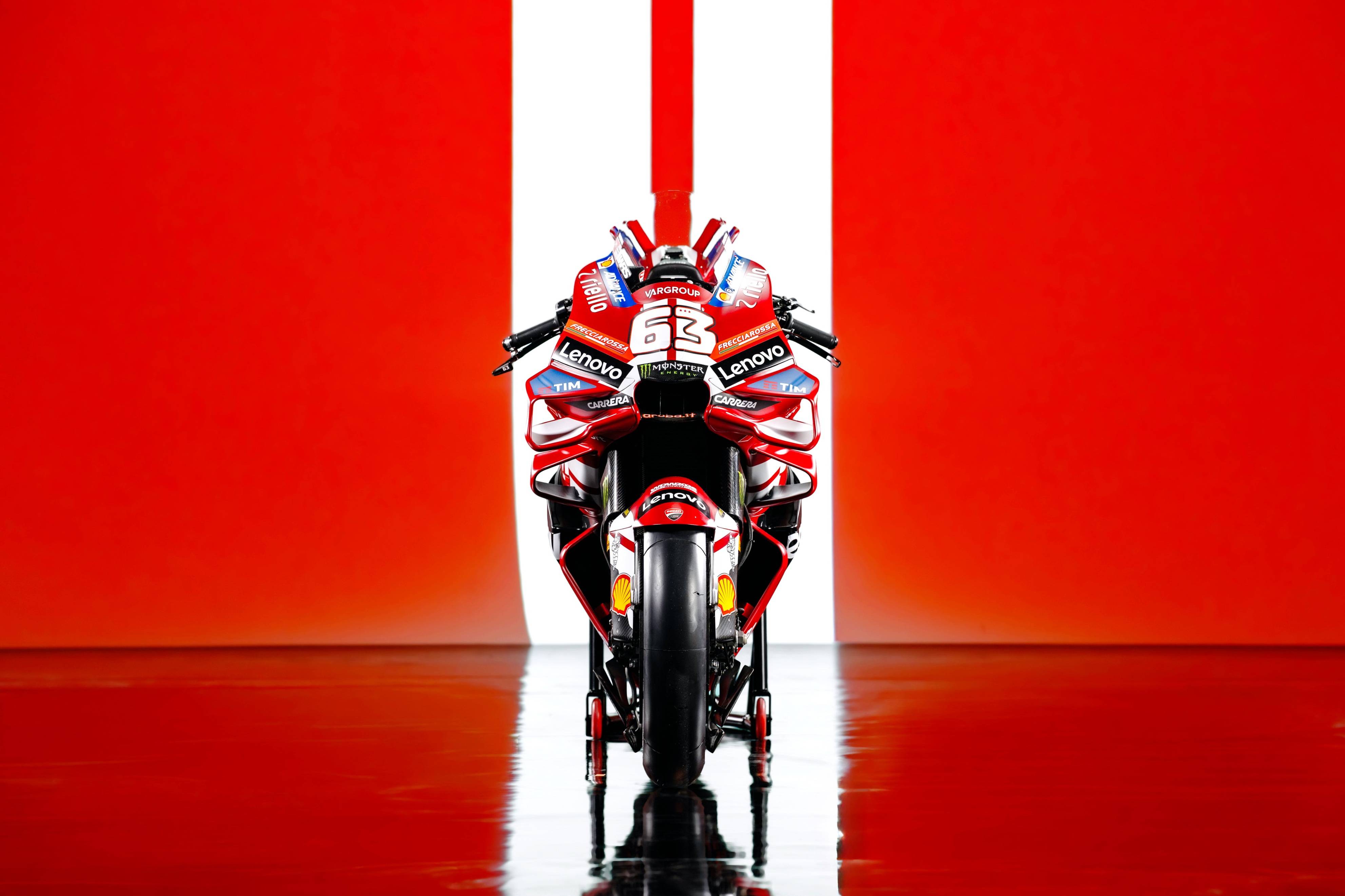 杜卡迪 MotoGP 工厂车队在新赛季沿用了去年的车手组合:驾驶 63 号车的意大利车手巴纳亚(Francesco Bagnaia),以及驾驶 93 号车的西班牙车手马昆斯(Marc Marquez)。2026 年是杜卡迪创立一百周年(1926 - 2026),车队在新赛季换上了一个哑光百年红(matt Rosso Centenario)为主色调、辅以白色线条的图案。