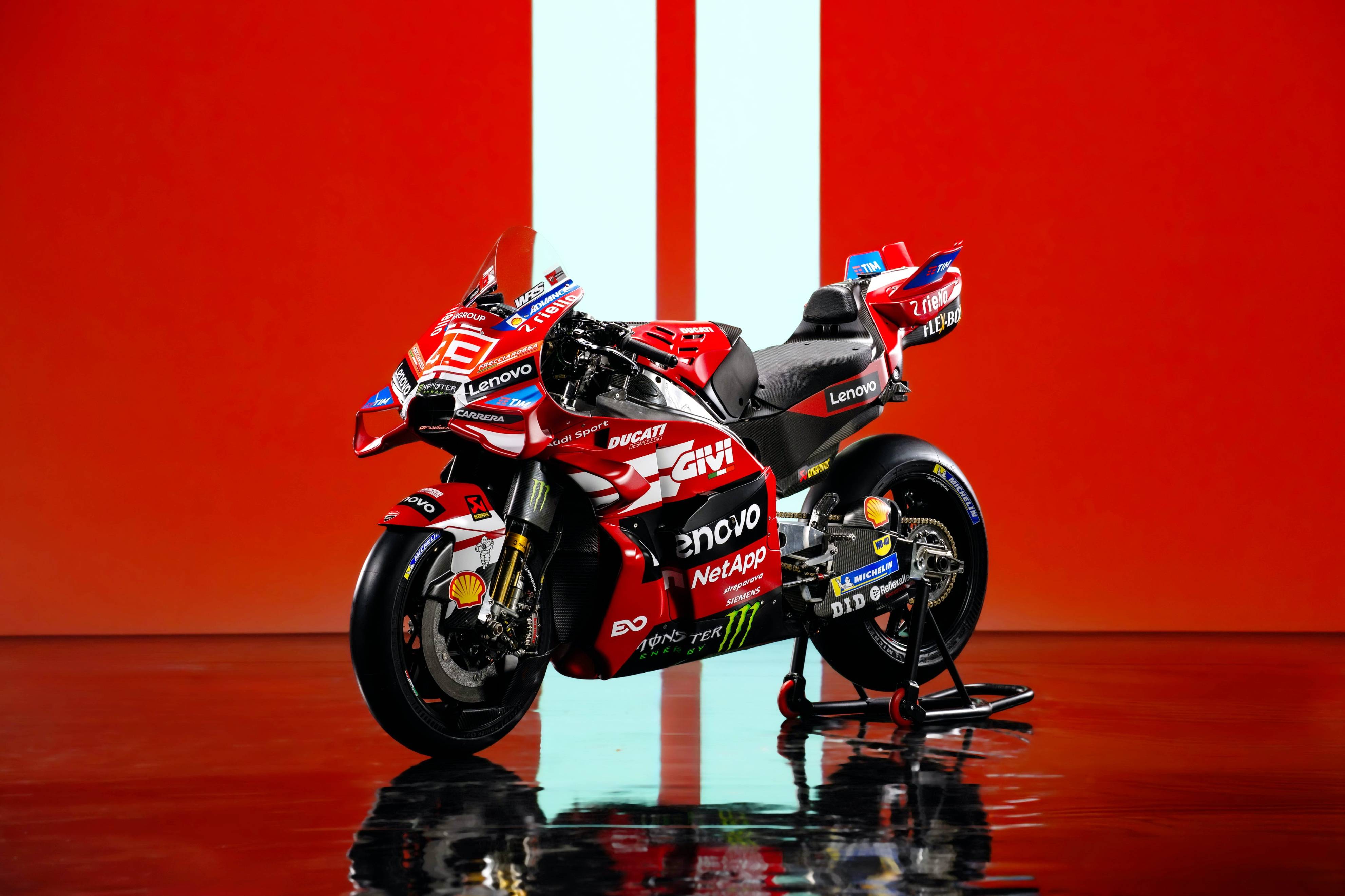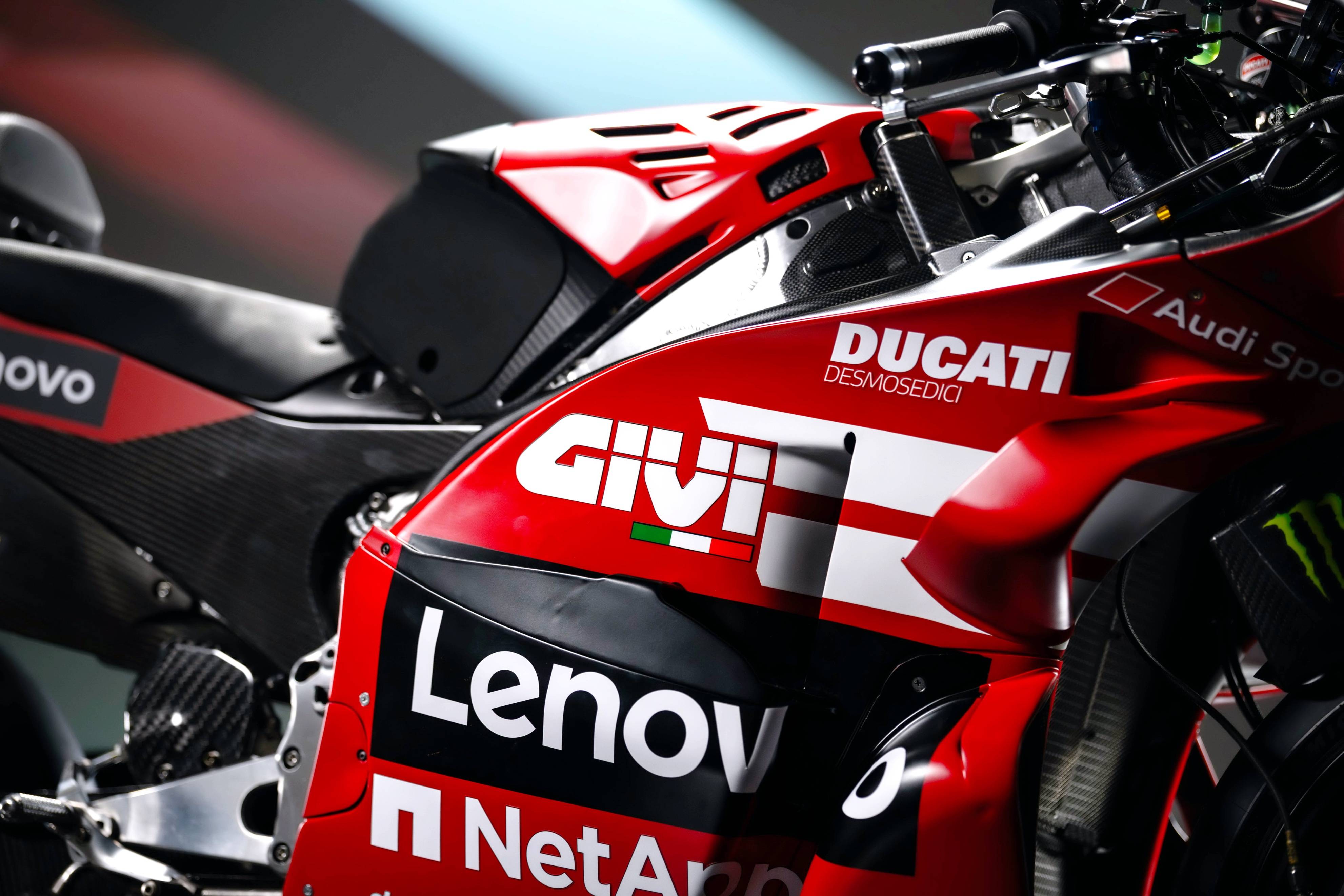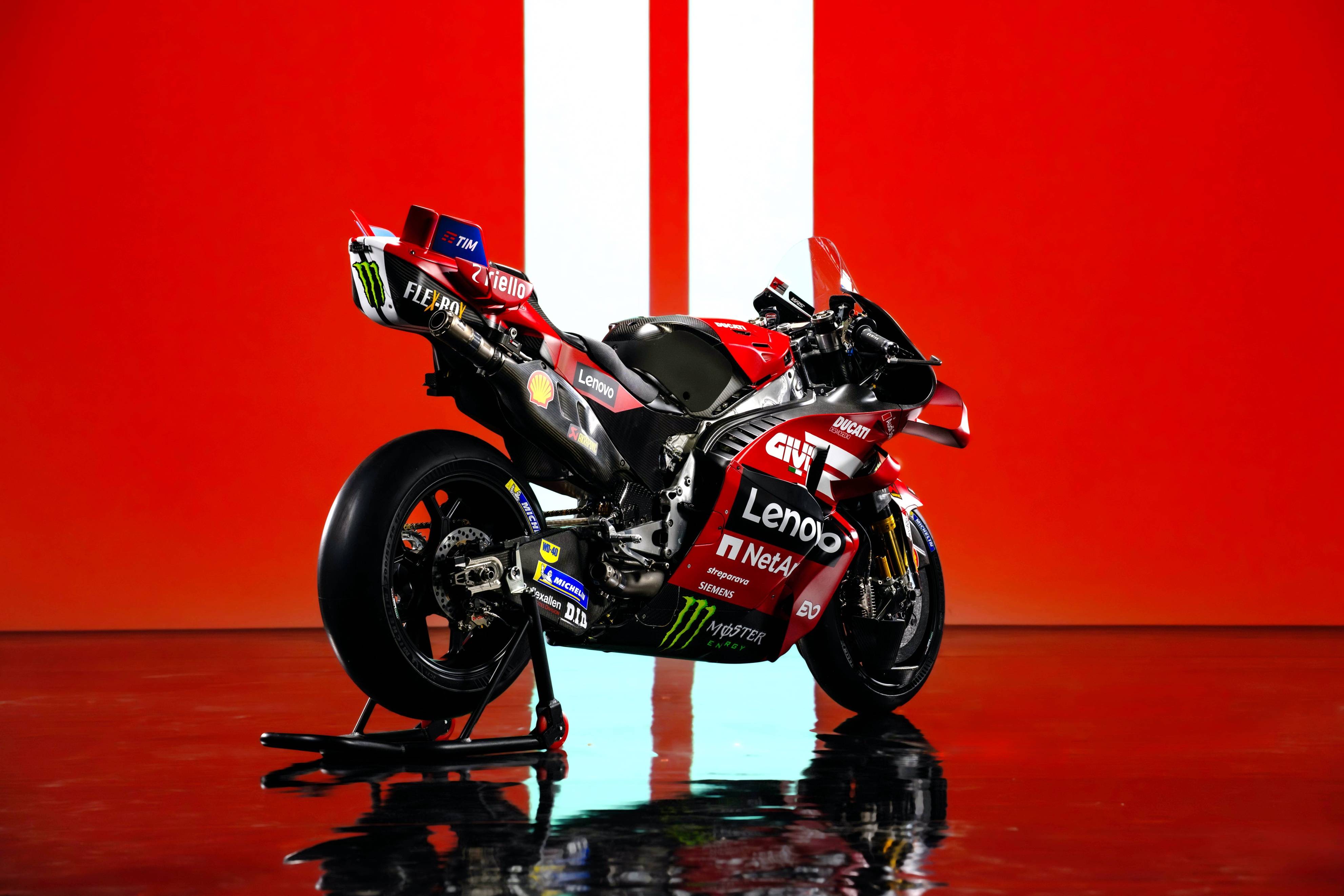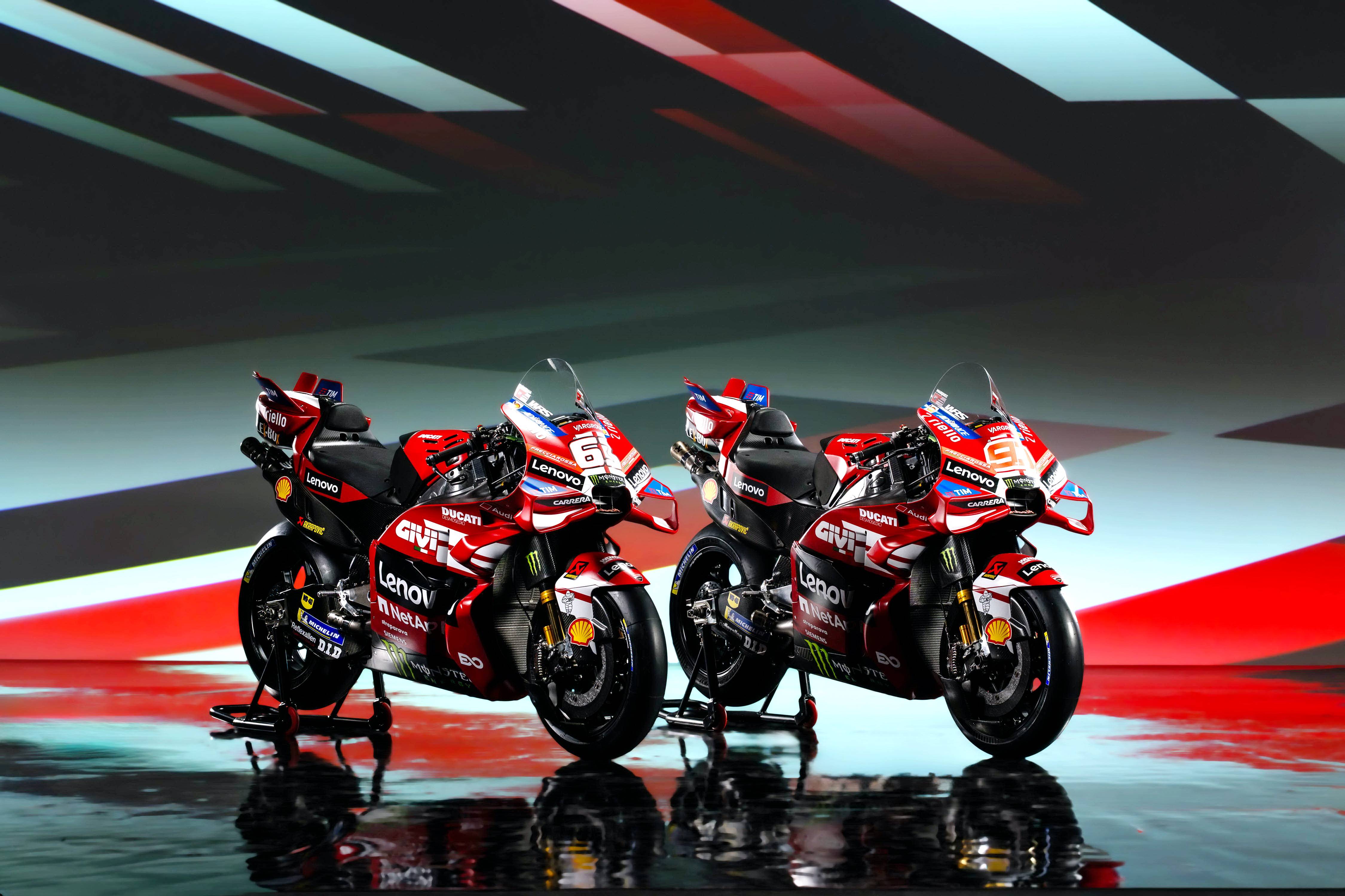杜卡迪 MotoGP 工厂车队在新赛季沿用了去年的车手组合:驾驶 63 号车的意大利车手巴纳亚(Francesco Bagnaia),以及驾驶 93 号车的西班牙车手马昆斯(Marc Marquez)。2026 年是杜卡迪创立一百周年(1926 - 2026),车队在新赛季换上了一个哑光百年红(matt Rosso Centenario)为主色调、辅以白色线条的图案。