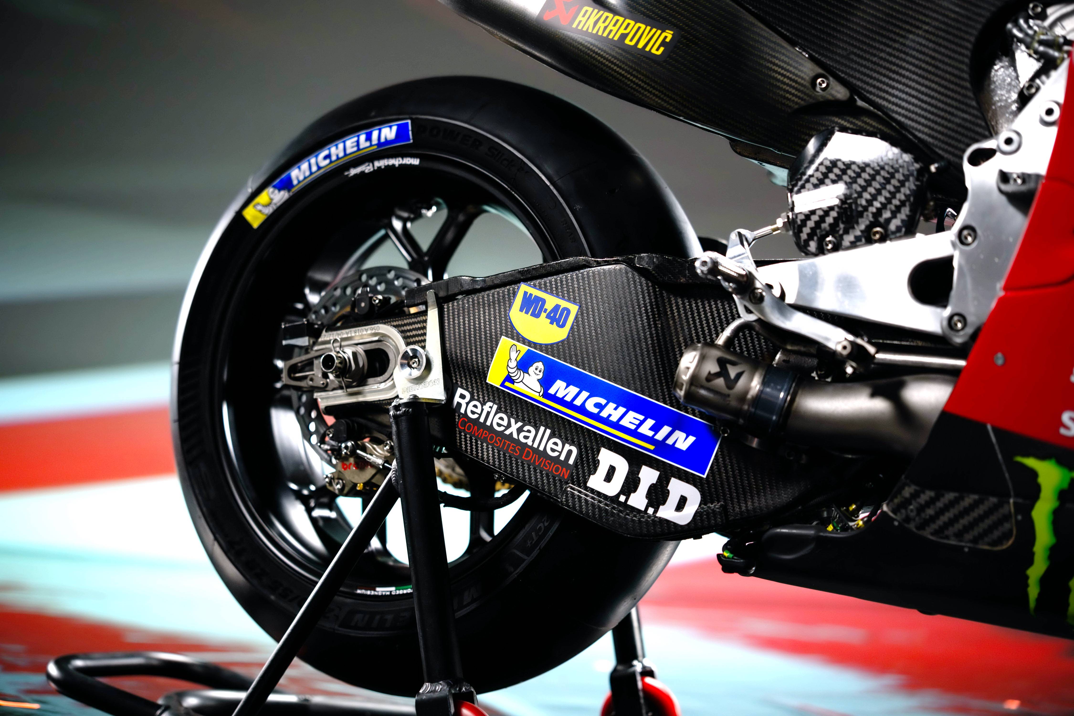 参考官方公布的数据,最新规格的 Desmosedici GP26 工厂赛车采用 V 型 90 度四气缸、Desmodromic 控制每气缸四气阀的发动机,排气量 1000 cc,配备了无缝变速齿轮箱,最大马力输出超过 280 匹;车体采用铝合金制双翼樑式的车架,经过升级的空气动力学组件,Ohlins 奥林斯的悬挂系统以及 Brembo 布雷博的制动系统。