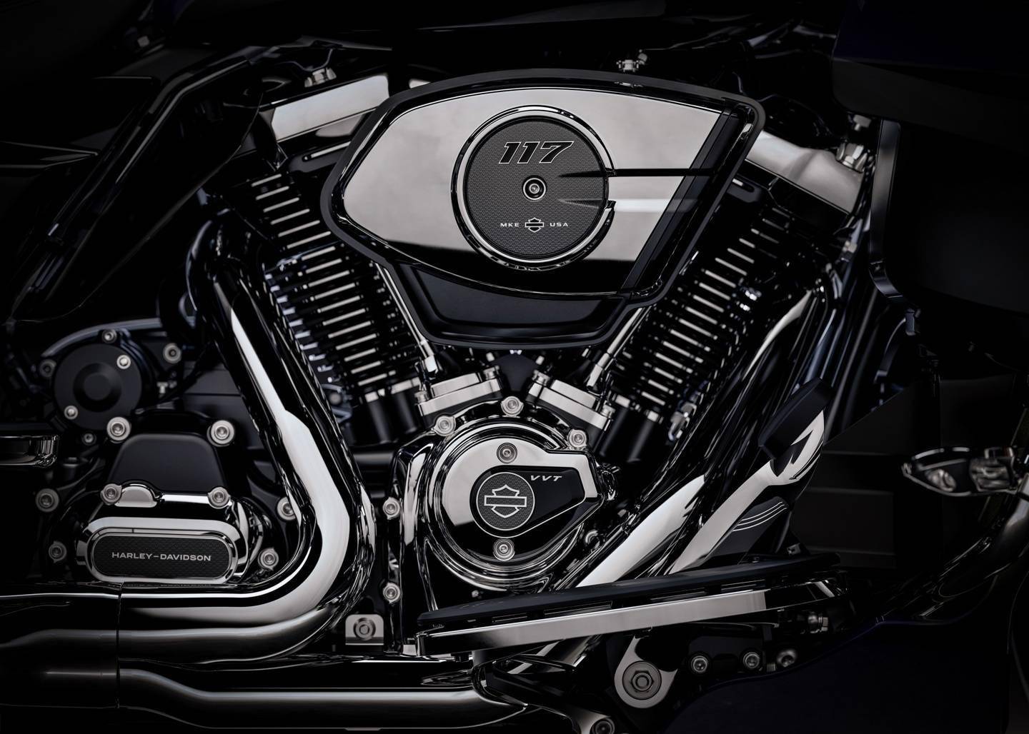 新车核心亮点在于动力系统,全系搭载 Milwaukee-Eight VVT 117 发动机,并优化了进排气气流。相比 2024 款搭载的 114 发动机,新动力总成最大功率为 106 马力,提升 14%;峰值扭矩达到 177 牛 · 米,增加 7.4%;充电输出功率至 58 安培,激增 21%,为长途旅行提供了更充沛的动力与电力保障。