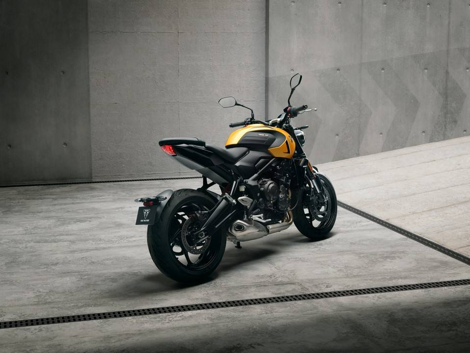 2026款Trident 660被凯旋视为新手入门的理想选择,车身改装包括更宽的油箱,搭配车身侧凹护膝,重新设计的分离式骑士与后乘客座椅,以及可供单骑的坐垫护盖。 前灯也换上新设计。