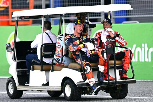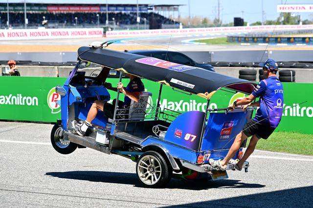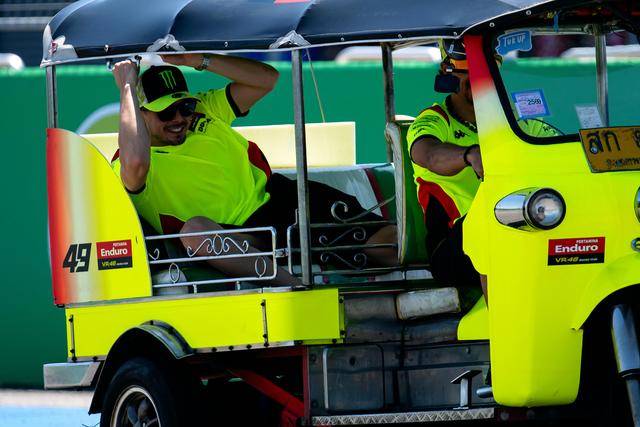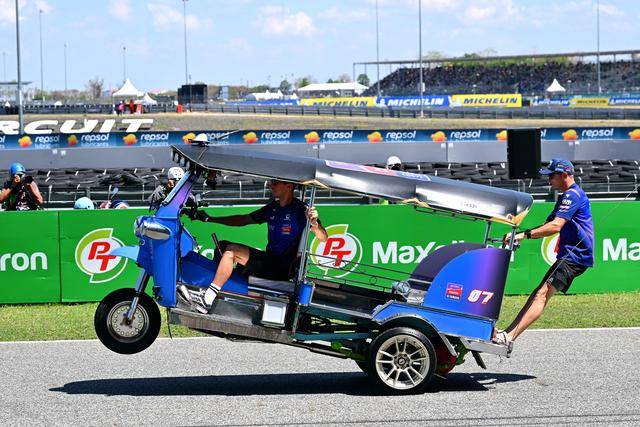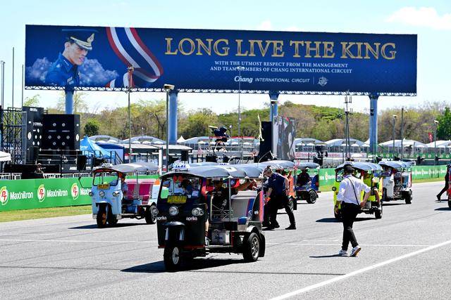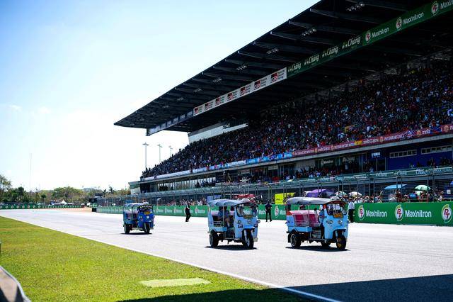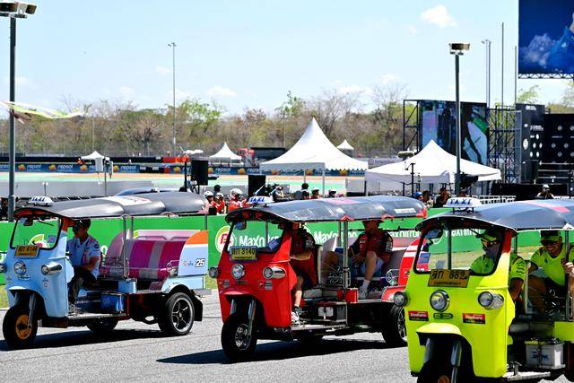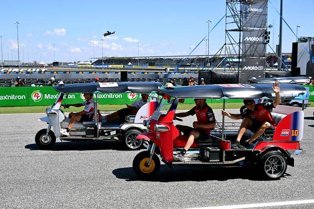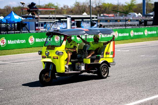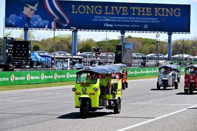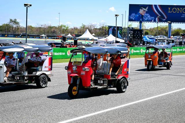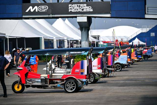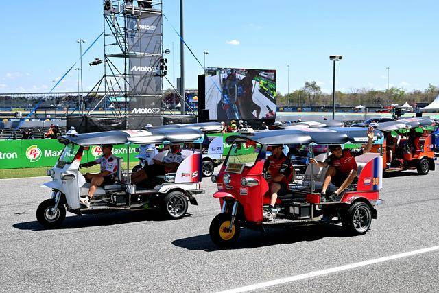 作为泰国当地的标志性摩托文化之一,Tuk-Tuk 三轮嘟嘟车堪称是当地交通里的一大特色。在周日(三月 1 日)的正赛开始前,作为开幕环节之一,MotoGP 级别的车手们,来了一场别开生面的嘟嘟车挑战赛(Tuk-Tuk Challenge)。
