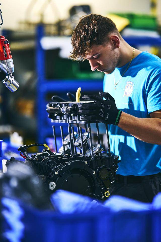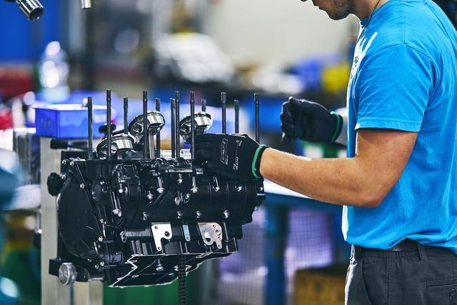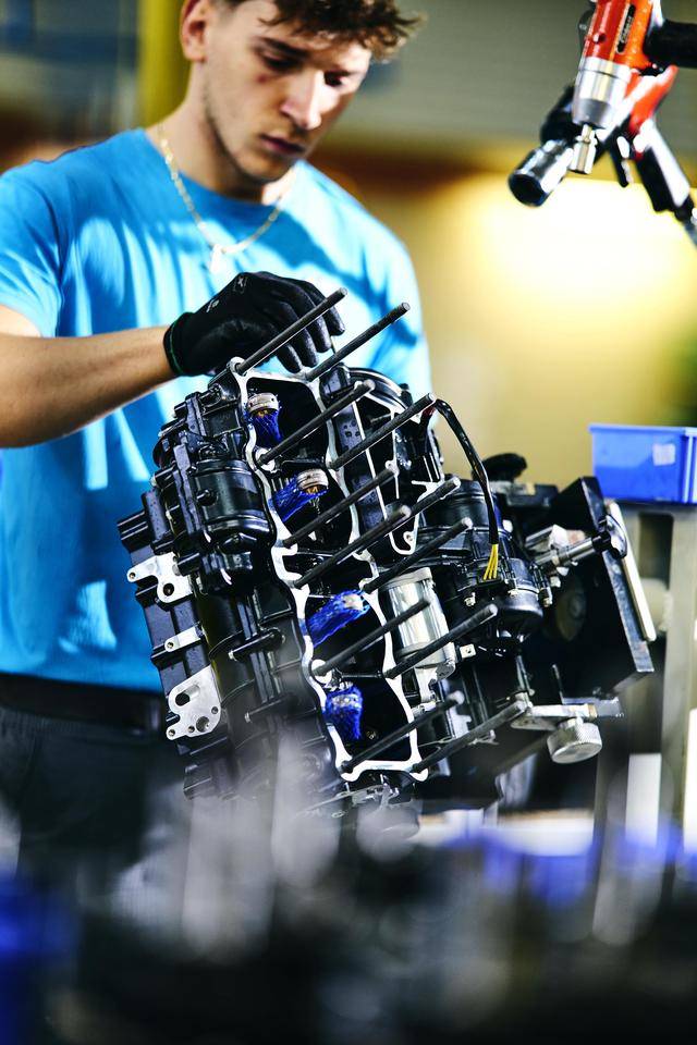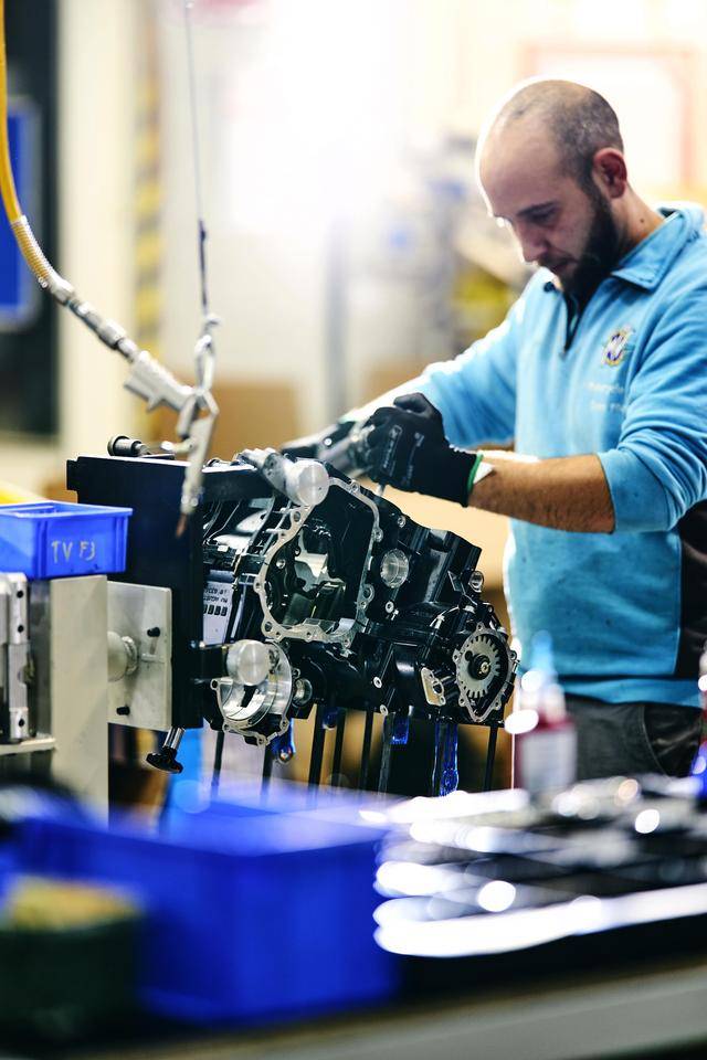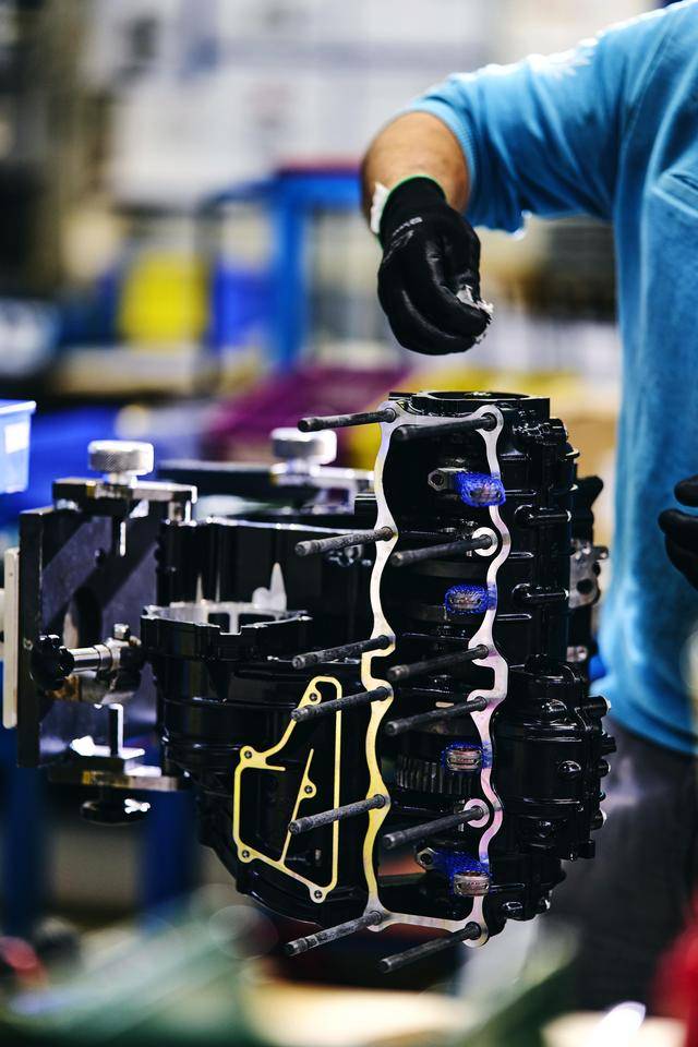 下面的图片是摄于 2024 年的、Superveloce 1000 Serie Oro 的发动机生产组装线。