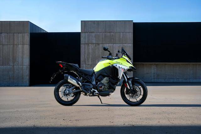 现行的 Multistrada V4、V4 S 揽途搭载一副水冷 V 型 90 度四气缸、每气缸四气阀的 Granturismo 发动机,排气量 1158 cc,最大动力输出与 2024 款同为 125 kw(欧洲版,约 170 匹。国内现行销售的版本为 124 kw)。车体方面,该车采用一副铝合金制的单体式车架,数字式的仪表板,前 19、后 17 英寸规格的车轮等。配置更高的 Multistrada V4 S,采用了更高级别的 Brembo 布雷博前刹车卡钳,Marzocchi 配套的电子控制自适应悬挂系统,尺寸更大的 TFT 全彩色数字仪表板,以及更丰富的电子辅助骑行控制系统等。