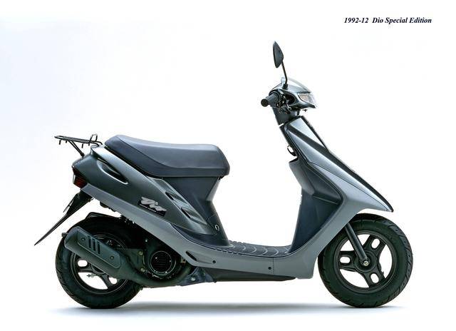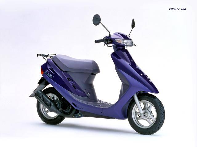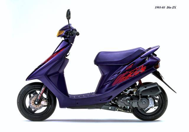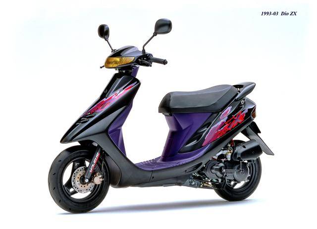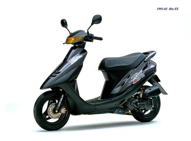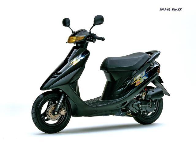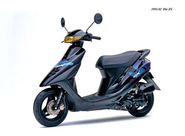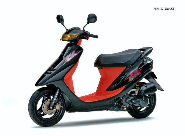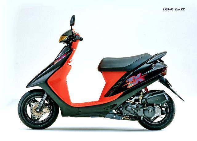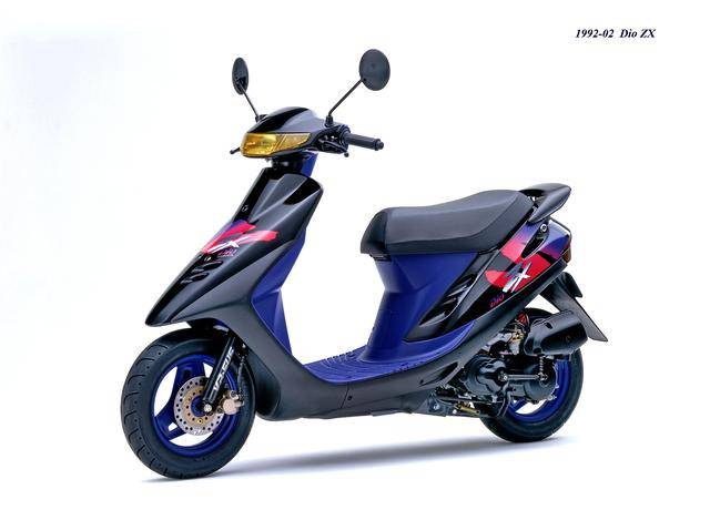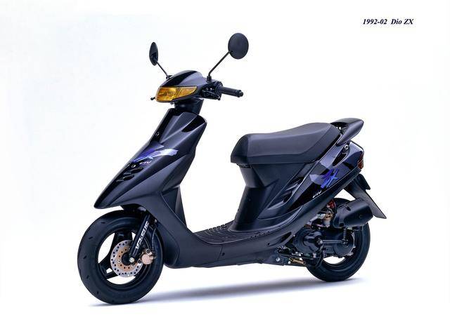 1992 年二月,基于第二代 Dio 的 Dio ZX(工厂编号与 SR 版同为 AF28)。对于 Dio 系列来说,ZX 版都相当于是换代前的中期改进型,新的 Dio ZX 采用一副编号仍为 AF18E、但内部经过大幅改进的风冷两冲程发动机,最大马力输出提高至 7 匹/7000 rpm。新机器除了汽缸和化油器经过升级之外,无段变速系统也经过修改、采用了宽变速比的新设计,此外、消声器也采用了新的设计。