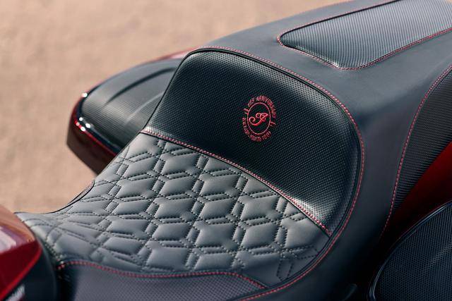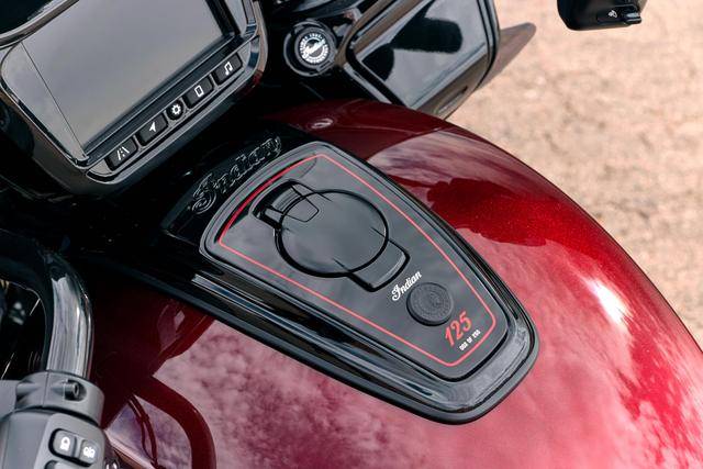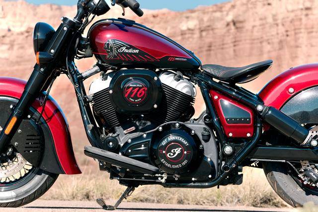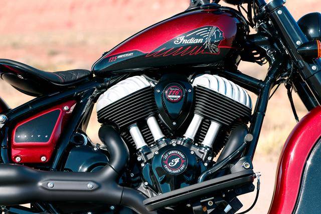 复古酋长一百二十五周年纪念版限量生产 250 辆,该车搭载一副风冷四冲程 V 型两气缸的 Thunderstroke 116 发动机,缸径、行程为 103.2 mm x 113 mm,排气量 1890 cc(约为 116 立方英寸),极低的 3300 rpm 即可爆发出强大的 156 N.m 峰值扭矩,是这副机器的焦点。纪念版的复古酋长配备了定制的鞍座,4 英寸触控屏的数字式仪表板,表面经过抛光处理的驾驶员脚踏板等。