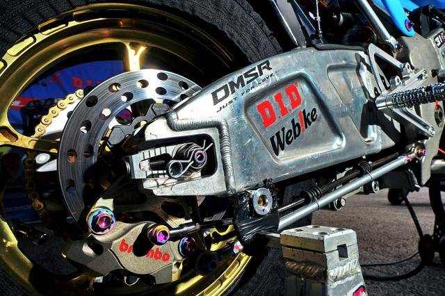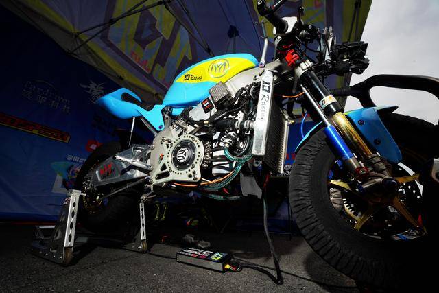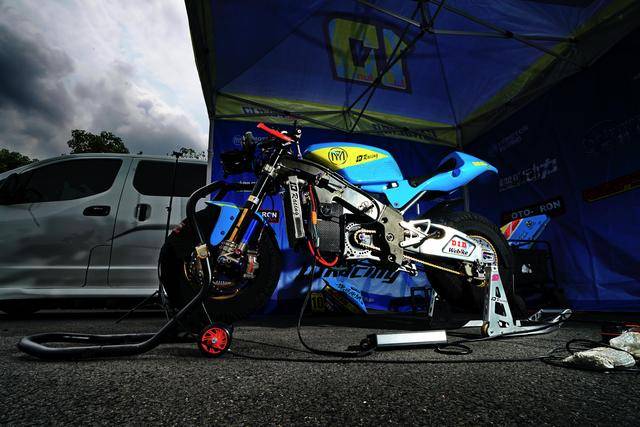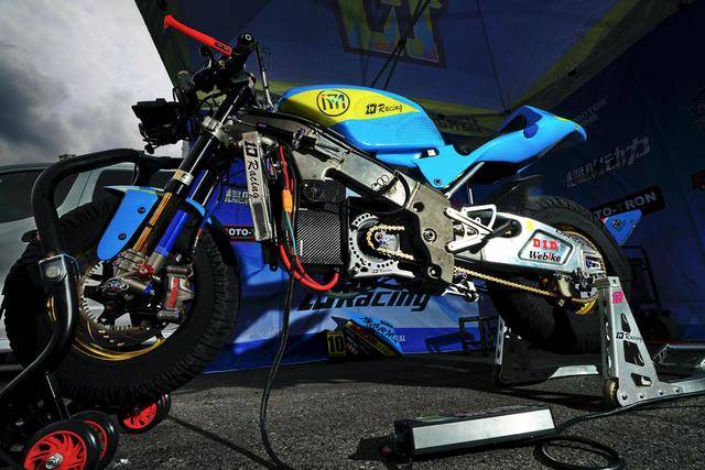 前不久的比赛里,我们再次在芸芸的一堆踏板式电动赛车里、看到了这辆倍受瞩目的胯骑式电动赛车 —— 尤其是它那副充满了金属机械感的、粗壮的 GP125 车架、后摇臂。