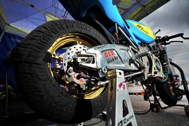对于自己的这个 “ 孩子 ”,李俊表示,由于采用了 GP 的车架,这辆赛车在连续的复合翻身弯时会相对较快,弯道的灵活性也更好;但在油改电后的弊端也会无限放大,因电车有着超高扭矩的动力特性,轴距短、弯中更低的倾角,再加上只能使用 12 英寸轮胎、其有别于 17 英寸轮胎的特性,在极容易就会产生超高爆发力的情况下,骑上这辆 10Racing 赛车,出弯时对油门的控制就要特别小心、也要求更加细腻。而对比同为 12 英寸车轮的踏板型赛车,这类赛车在弯中可以更早开油。因为赛事技术规则限定 12 英寸车轮这一原因,所以这辆车存在很尴尬的一个点,就是轮毂从大改小后、其操控特性几乎就是完全变了一个纬度,若想把这辆赛车的全部性能发挥出来、需要装回 17 英寸的车轮 —— 他在此前已经用 17 英寸的车轮、反复做过测试。