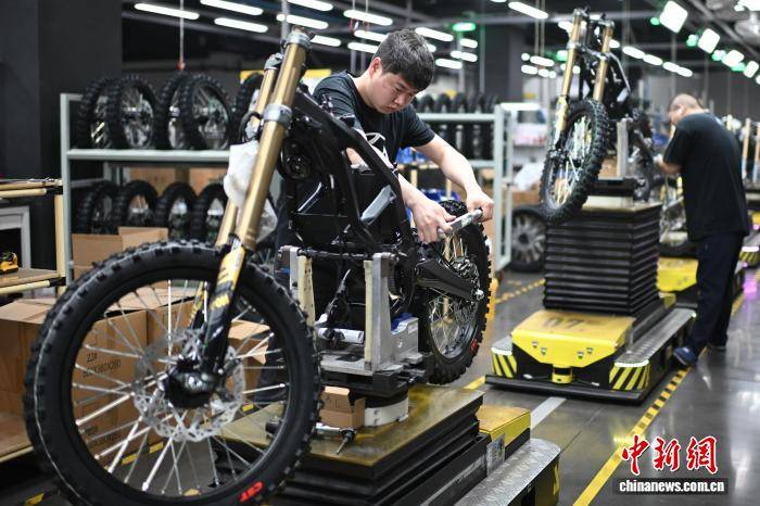 4月10日,工作人员在重庆虬龙科技有限公司总装车间组装电动摩托车。中新社记者 何蓬磊 摄